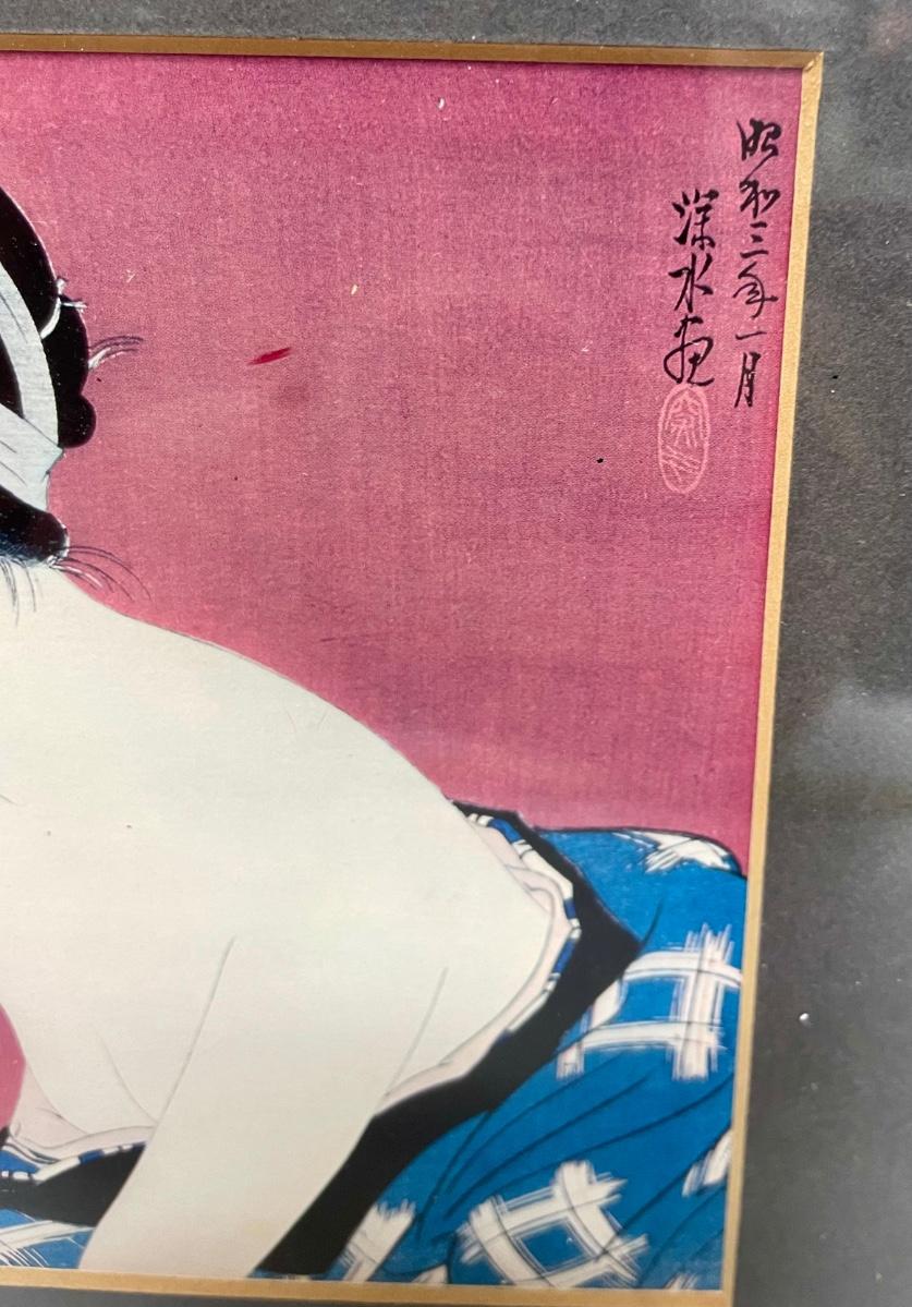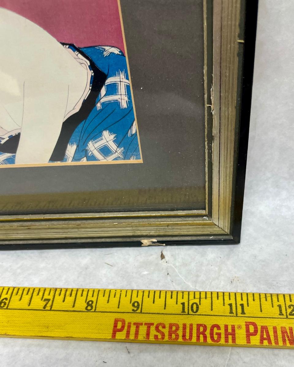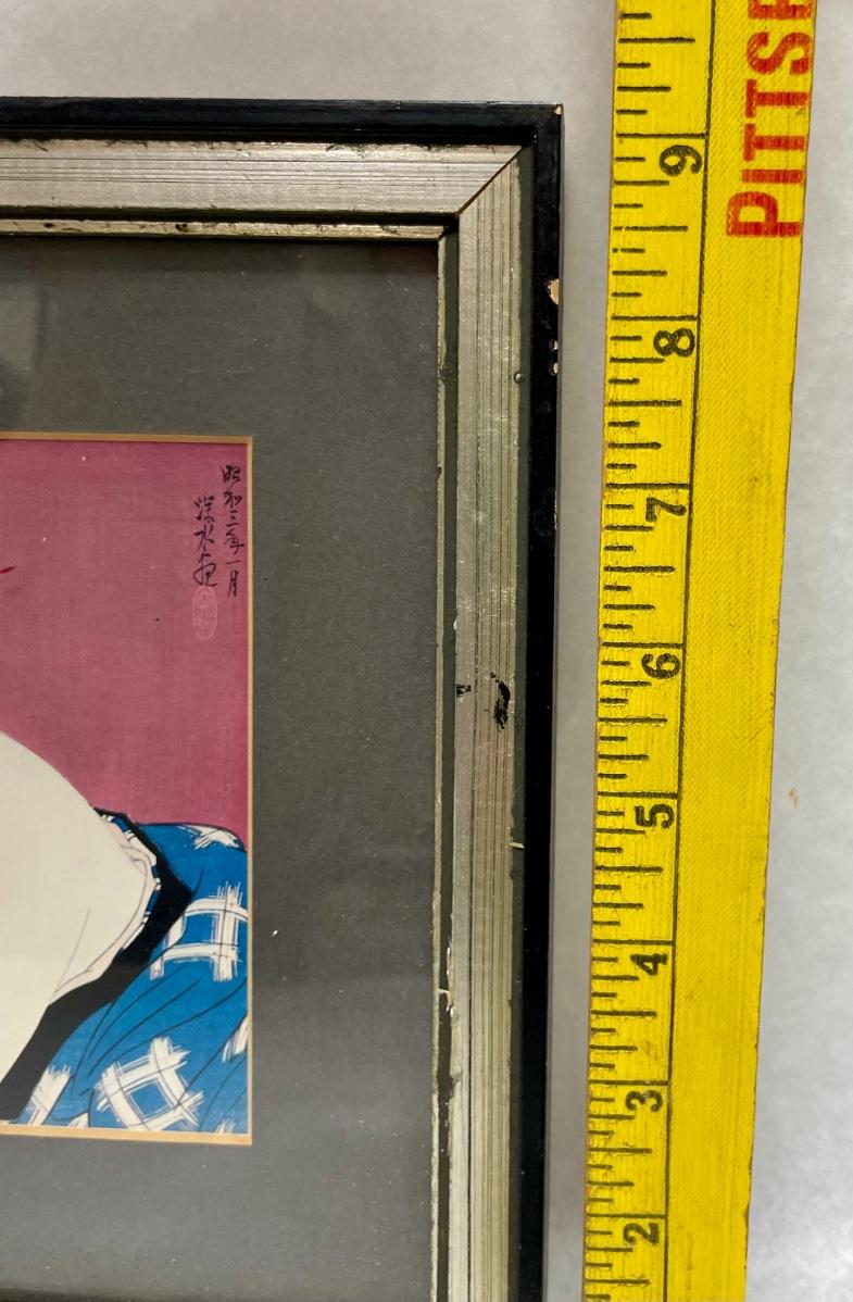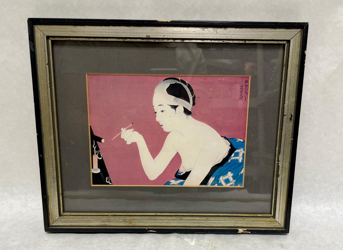 Tokyo artist Ito Shinsui, typically making woodblock prints. This framed copy measures approx. 9" x 11". Good condition.