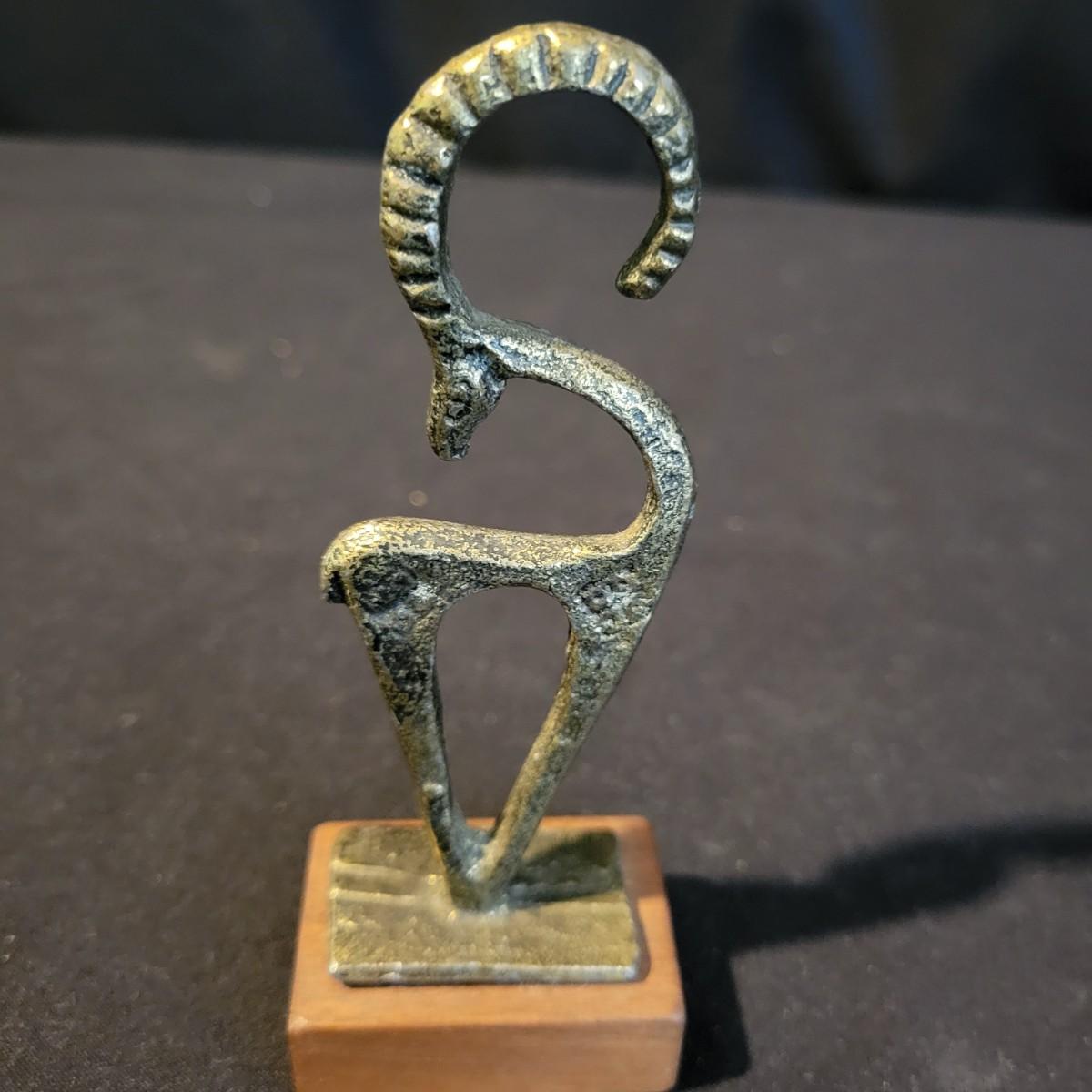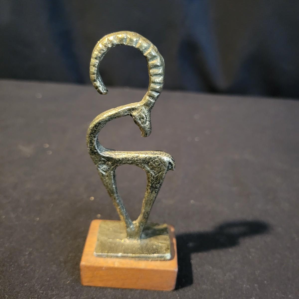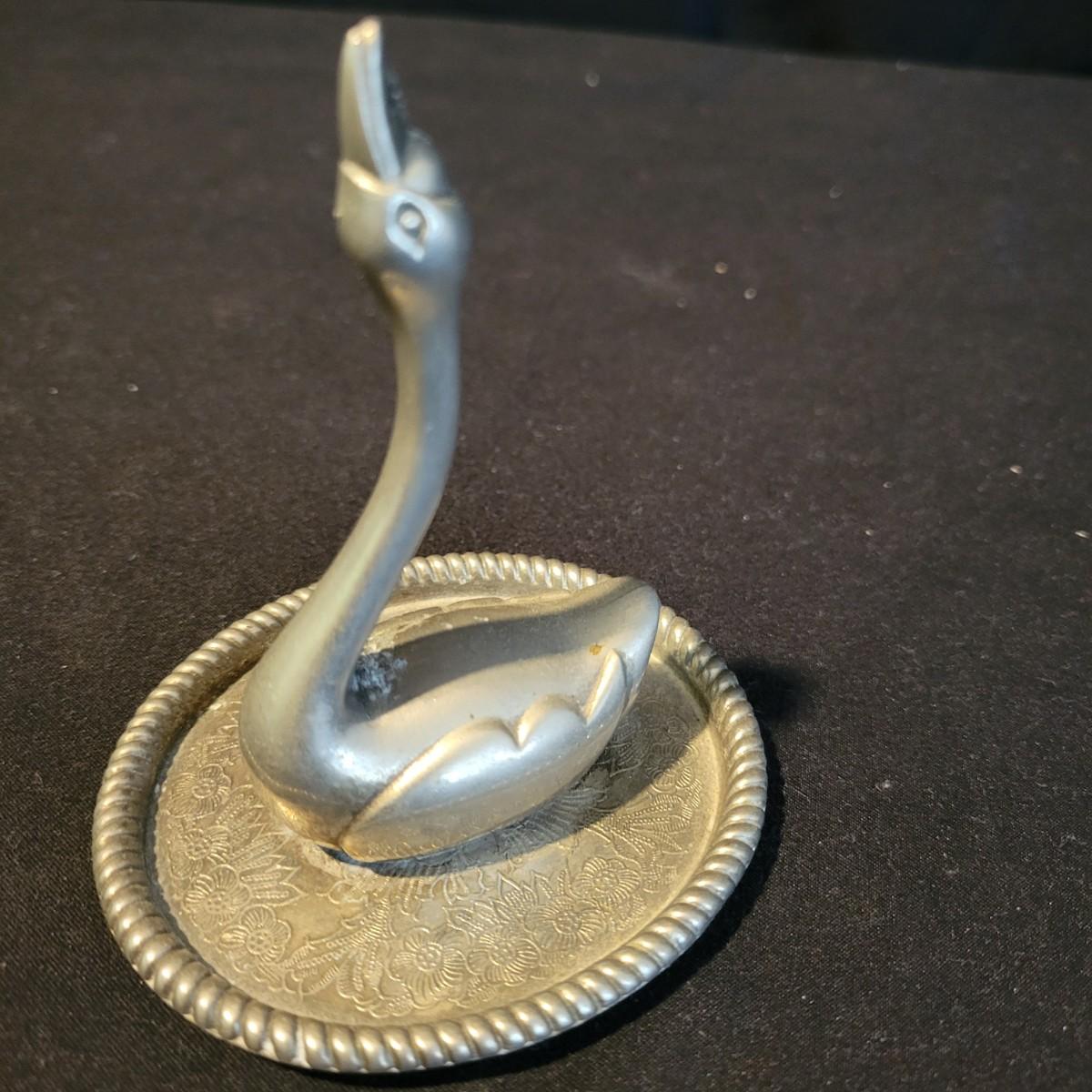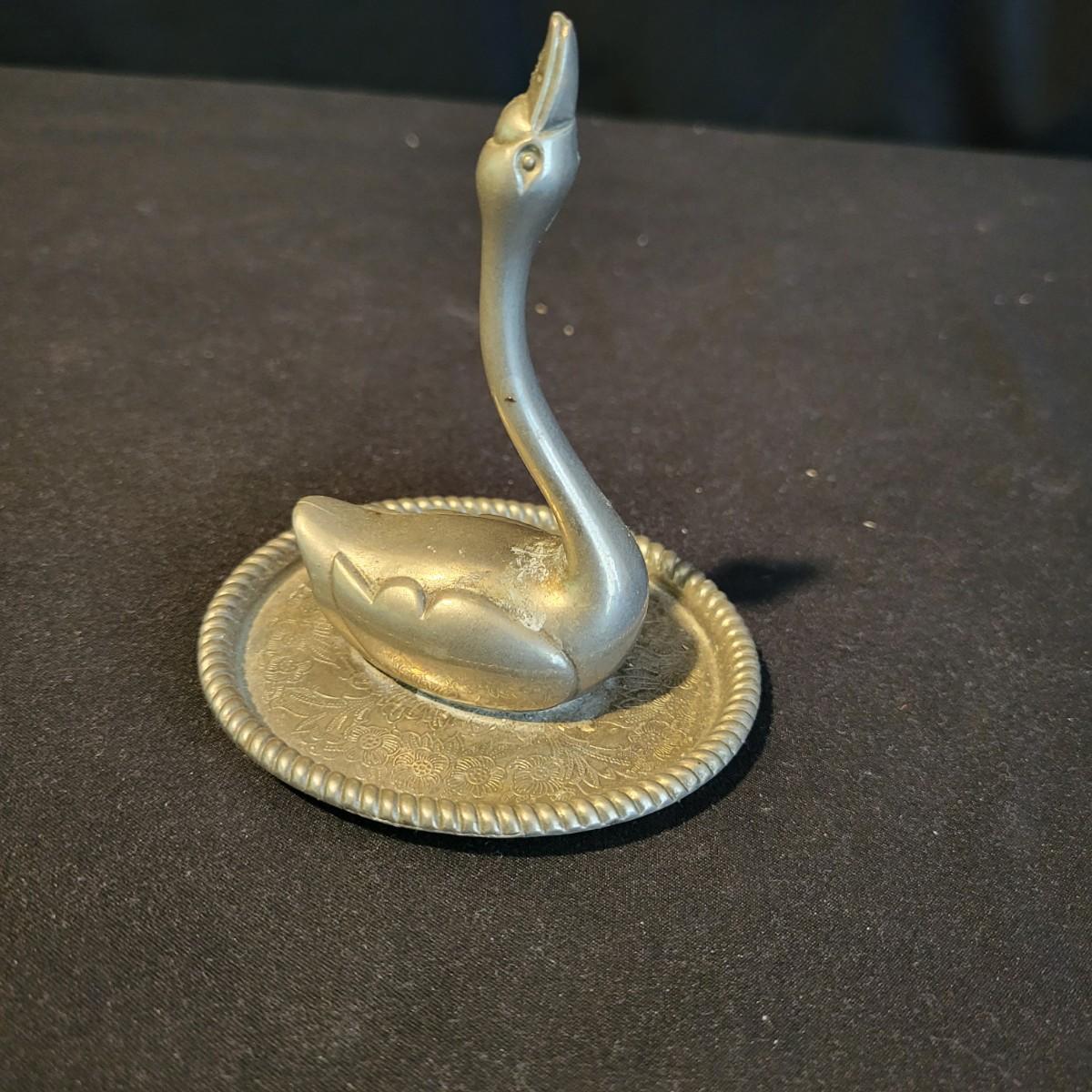 Three small pieces of framed art in good condition. One piece is a manger scene with metallic accents framed in a wooden frame. Another is a print of Three Little Birds framed in metal, tabletop frame. The last piece is three hand painted elephants, custom framed in a wooden frame. Also included in the lot are two small figurines. One is an Ibex made of metal with a wooden base. The final piece is a swan sitting on a silver-colored platter. The last framed piece measures approximately 16" x 9.5" x 1". Shipping available. Shipping Art can be costly please call UPS store at 828-252-6930 for quote.