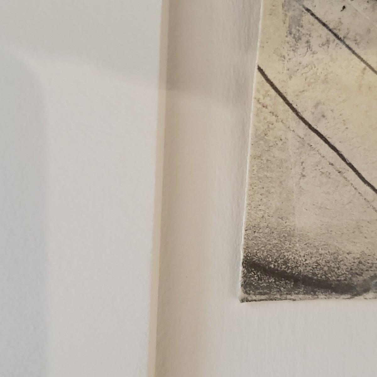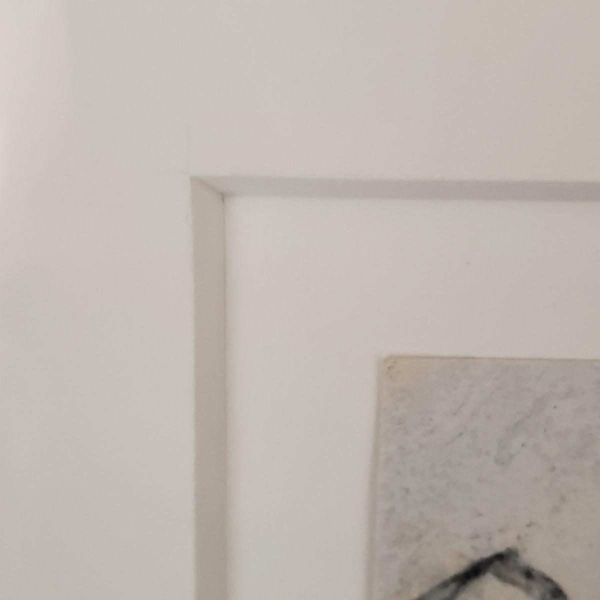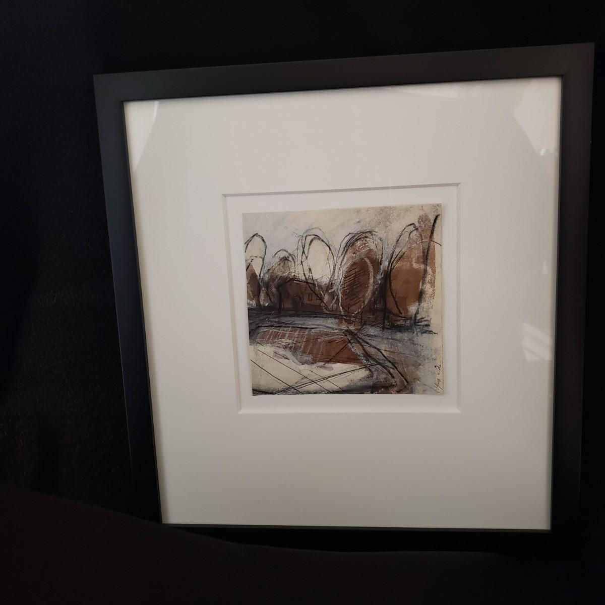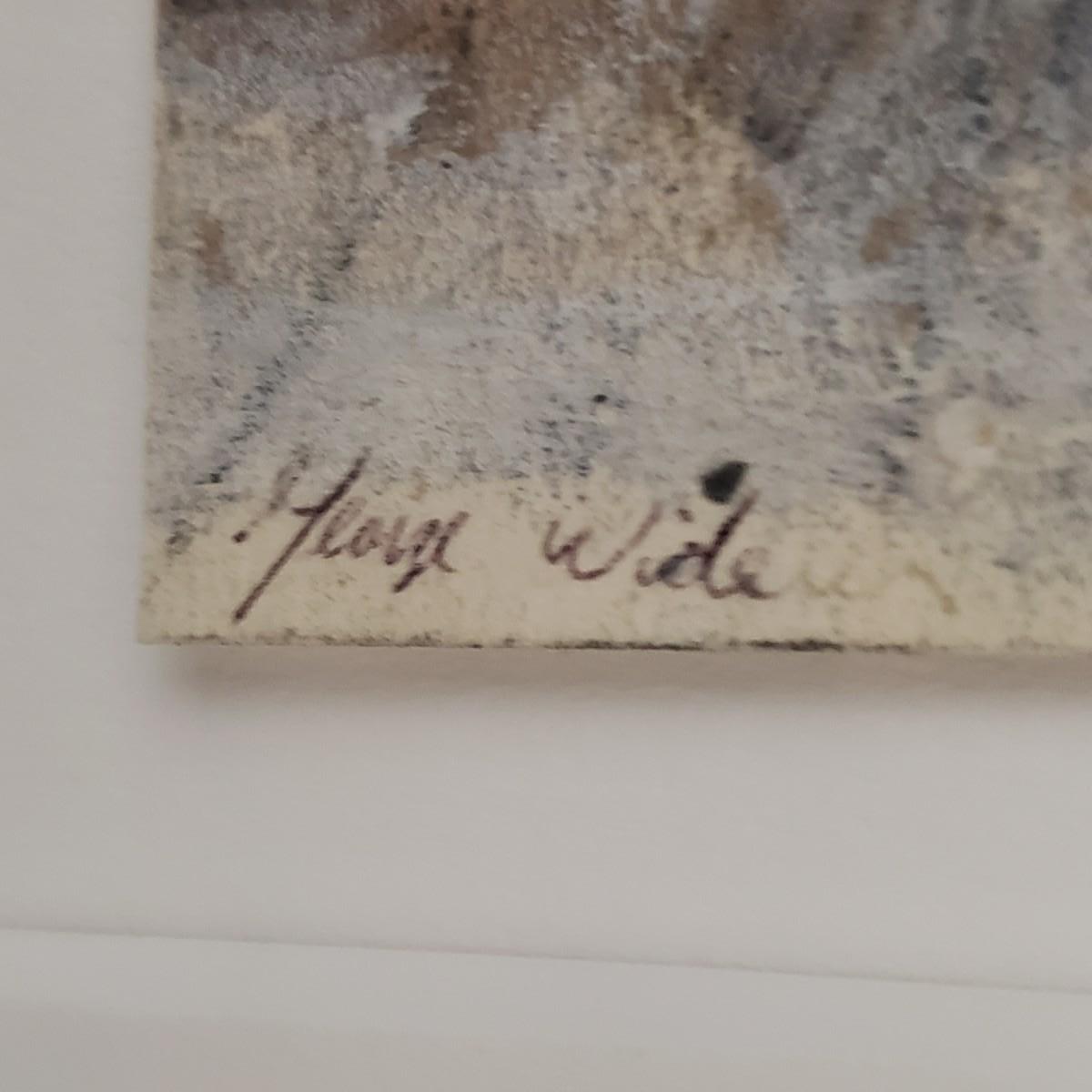 This wooden framed artwork appears to be signed by George Wide. Art is matted behind glass. Piece measures 14" x 15".