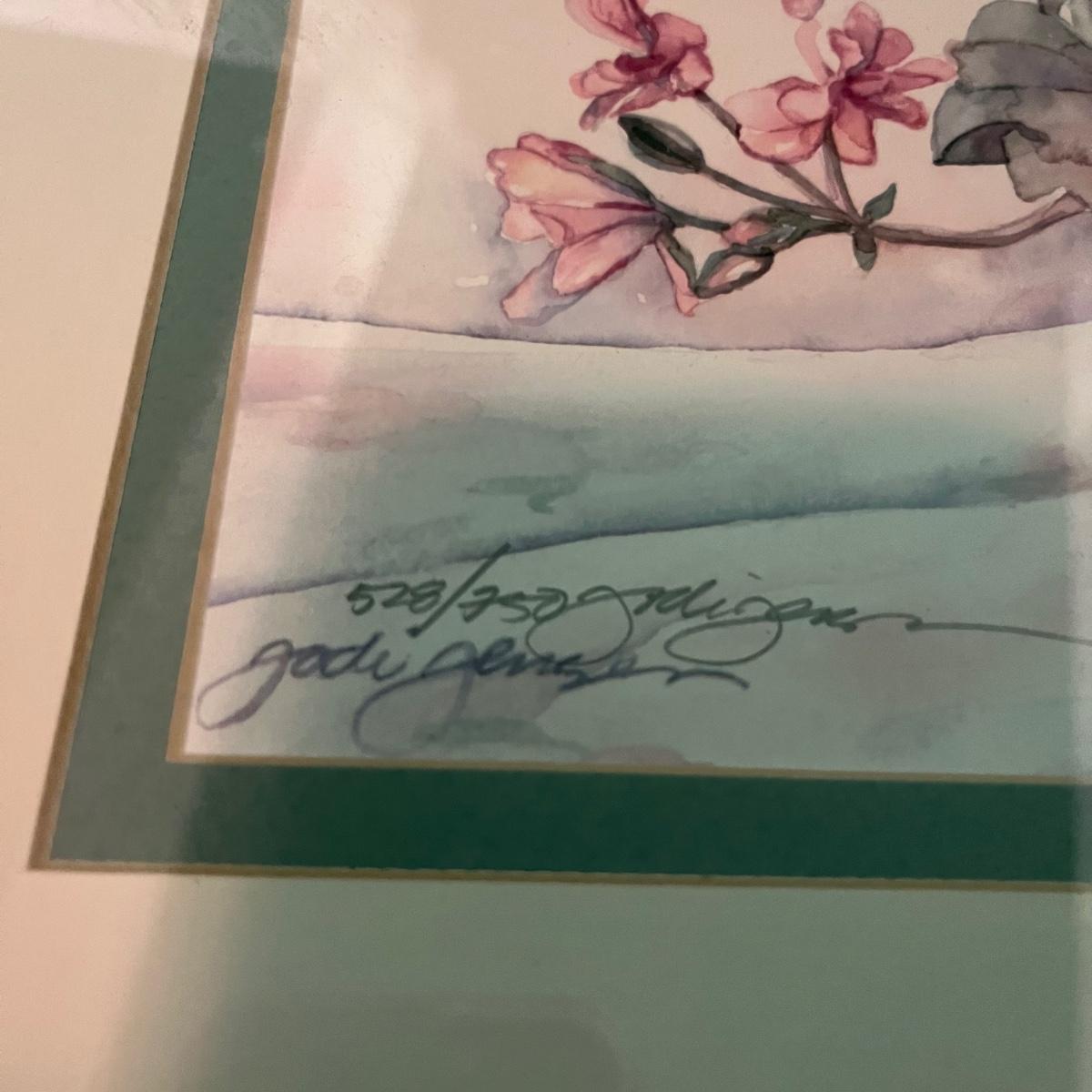 Jodi Jensen pencil signed and numbered framed print with mat behind glass. Frame measures 19” x 23”. Shipping Available. Shipping art can be costly. We suggest calling our local UPS with dimensions and getting an estimate before bidding (828) 252-6930.