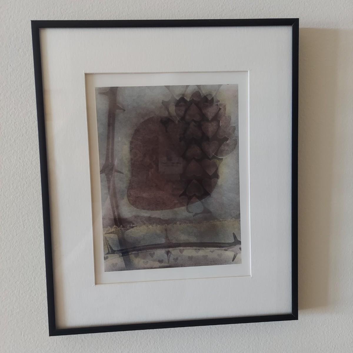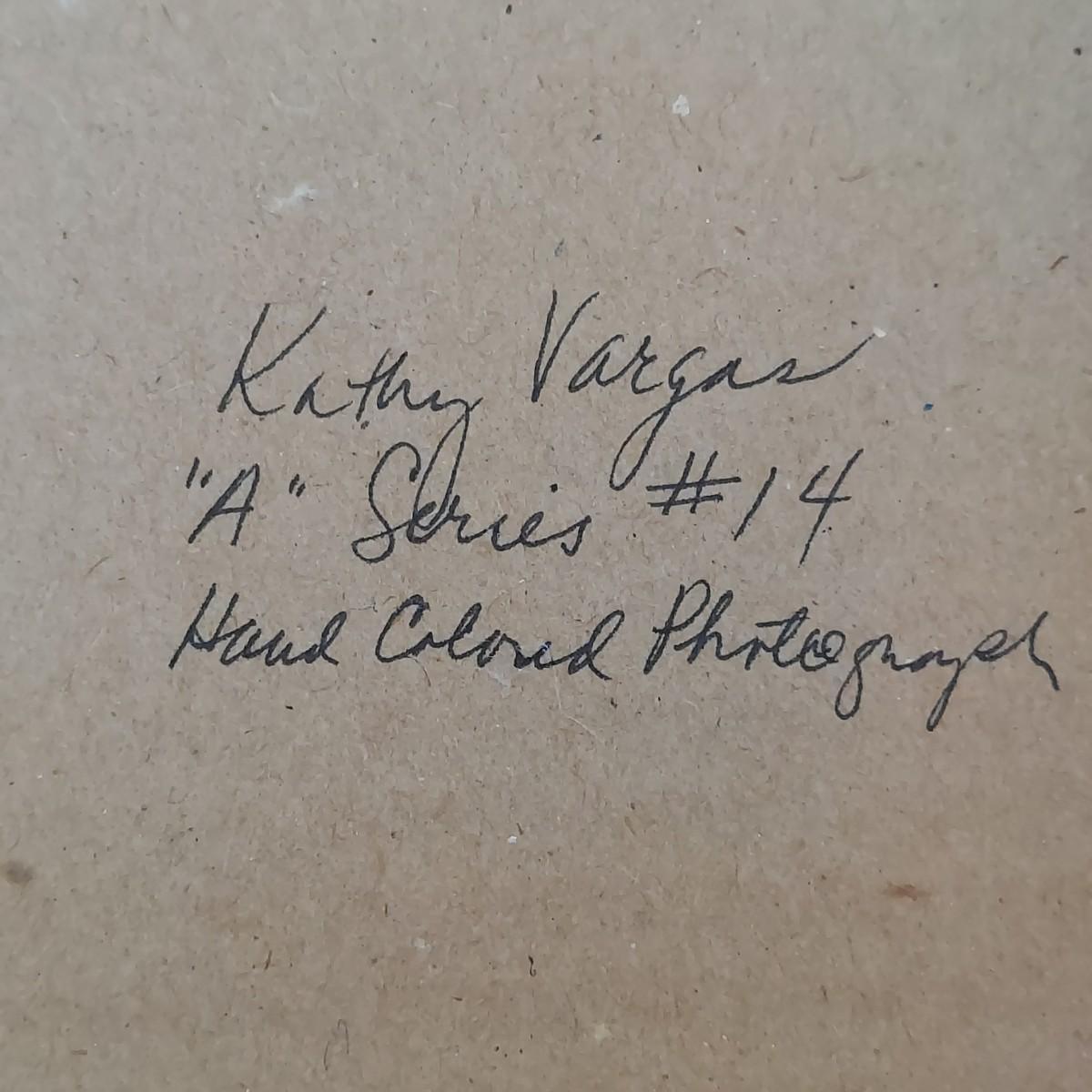 Artwork labeled on the back as a hand colored photograph by Kathy Vargas. Piece is matted and framed under glass. Metal frame measures 10” x 12"H. Unclear if this is a print or an original. Please see photos for details. Shipping available