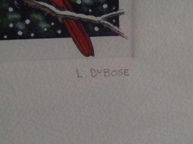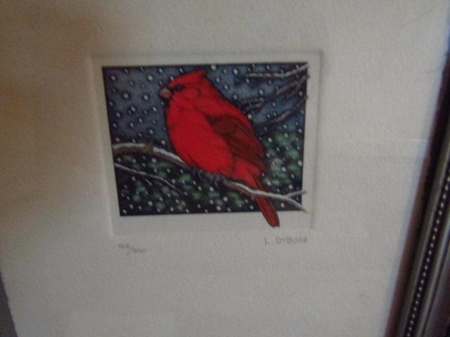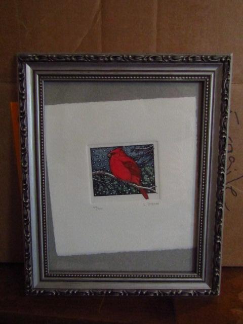 Framed Art by L. DuBose- Cardinal in Winter. Signed and numbered.