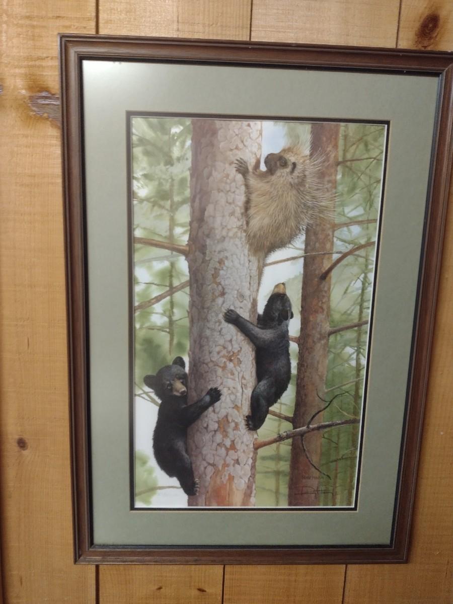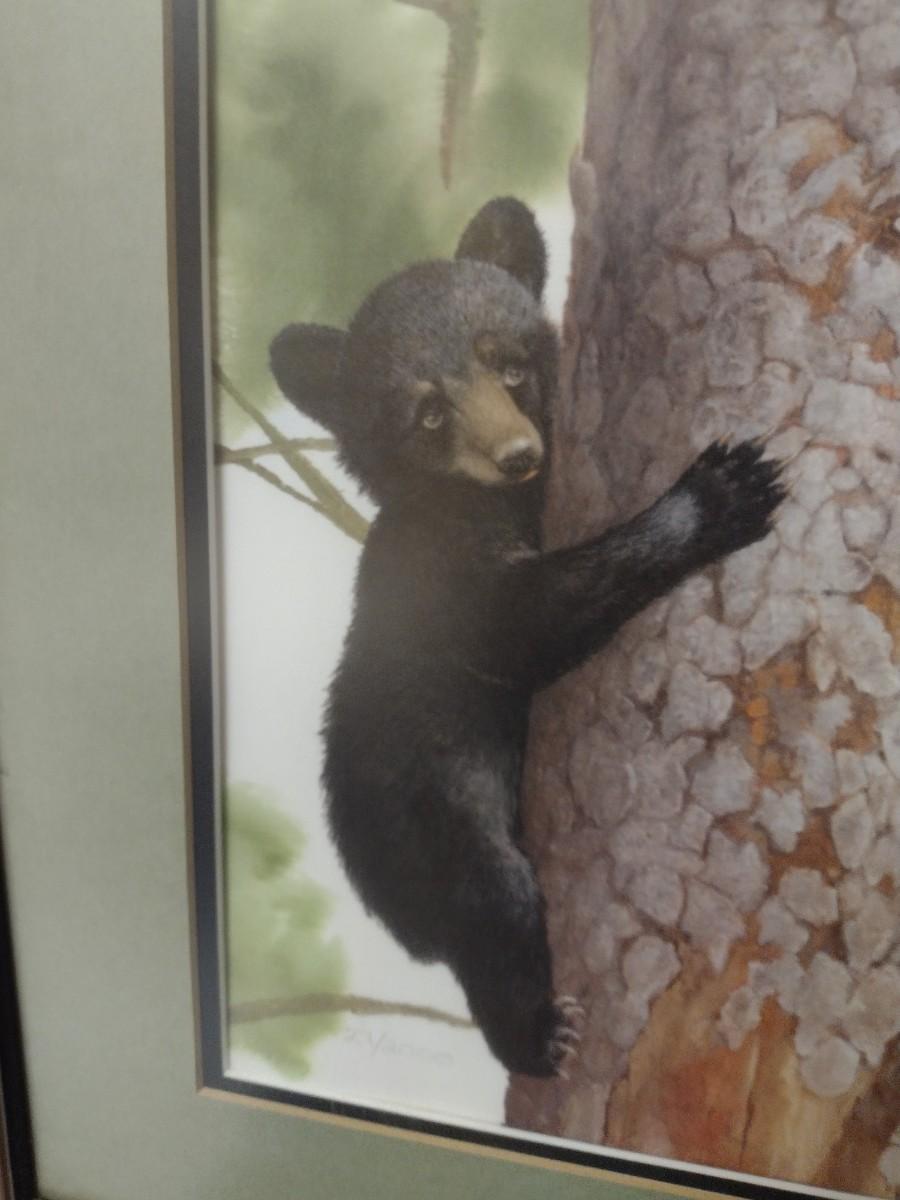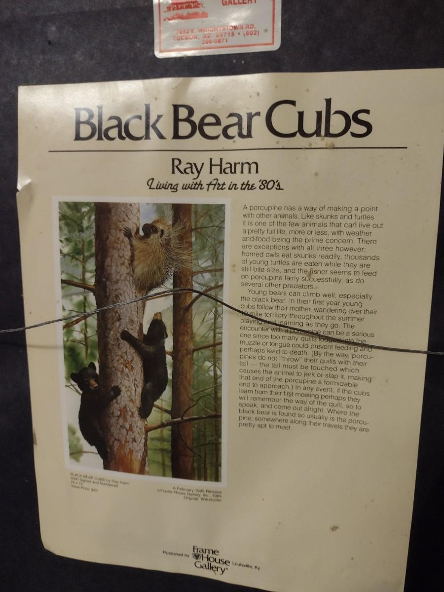 Framed Art by Ray Harm 'Black Bear Cubs'. Numbered and double signed. PLEASE NOTE:. Due to no internet connection or wireless service, all invoices must be prepaid via PayPal, Stripe, or Zelle prior to arrival at pick up. Exact change cash onsite is acceptable but absolutely no debit or credit cards at time of pick up.