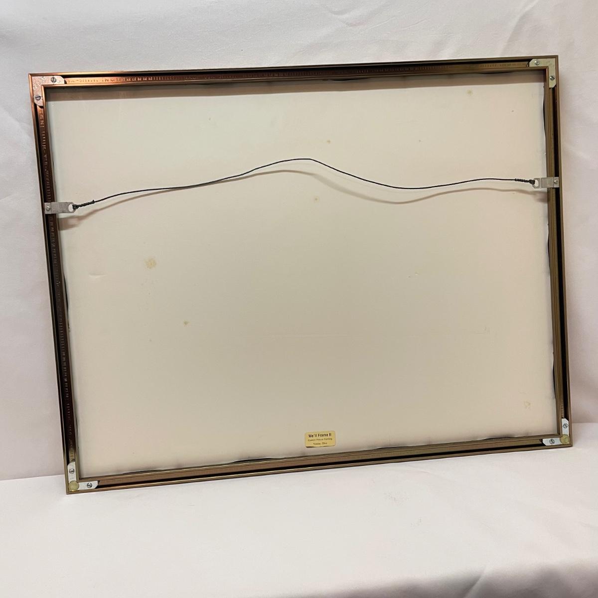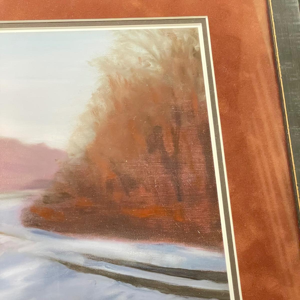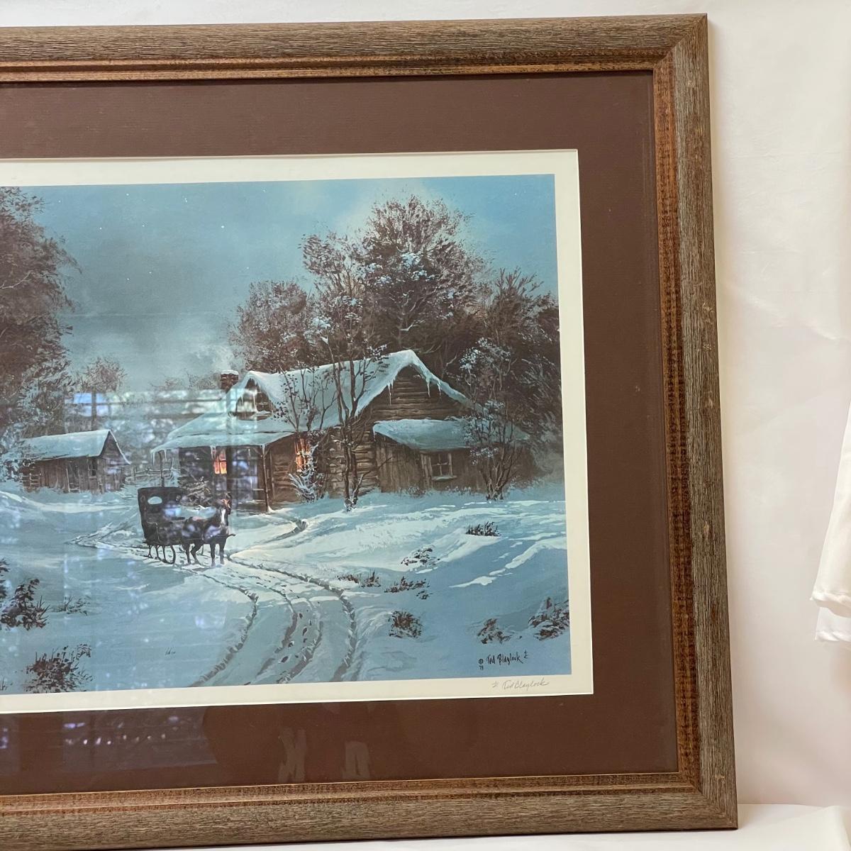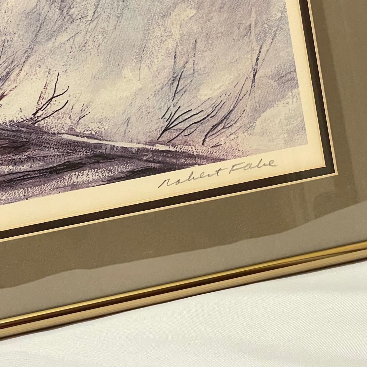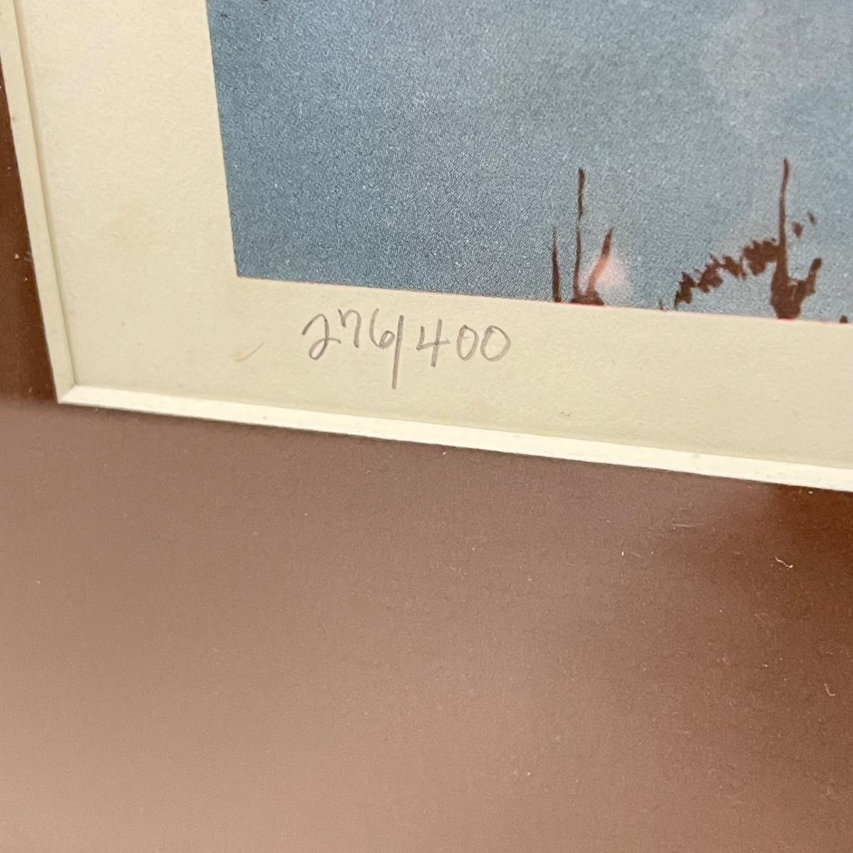 Three snowy art pieces, all matted and under glass. “Tracks in the Snow” has a signature with permanent marker stating R Rozzi, and appears to be a. A/P. Print. This one is double-matted in a wood frame measuring 16.5” x 14.5”. Next art appears to be pencil signed Old Station and Robert Fabe. This piece is also double matted in a metal frame measuring 24.5” x 19.25”. Lastly, another piece that appears pencil signed and numbered by Ted Blaylock. This one has a single mat and measures 26.75” x 22.75”. Shipping available. Shipping can be costly. We suggest contacting our preferred local shipping provider, Postage Express, with dimensions and getting an estimate before bidding: (828) 255-9250 or email shipping@postageexpressnc.com