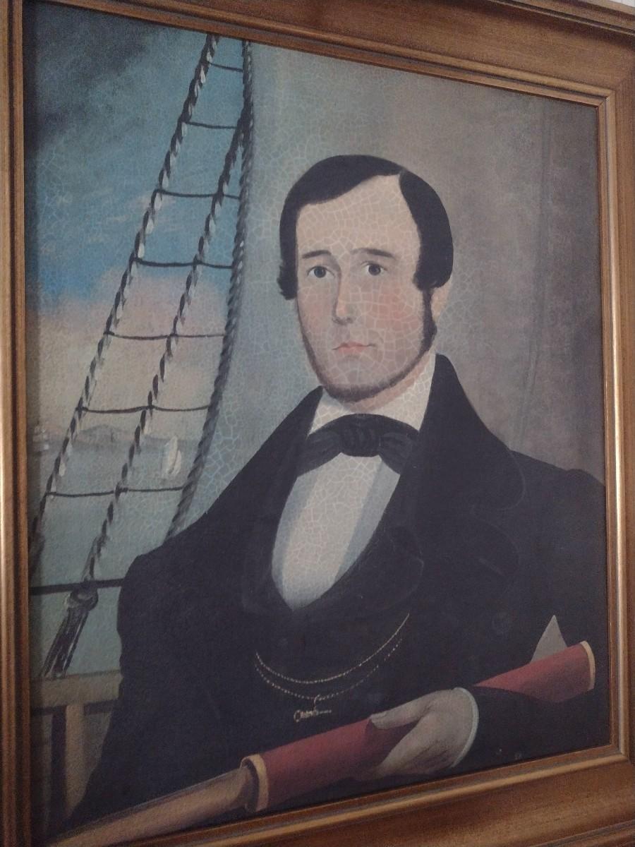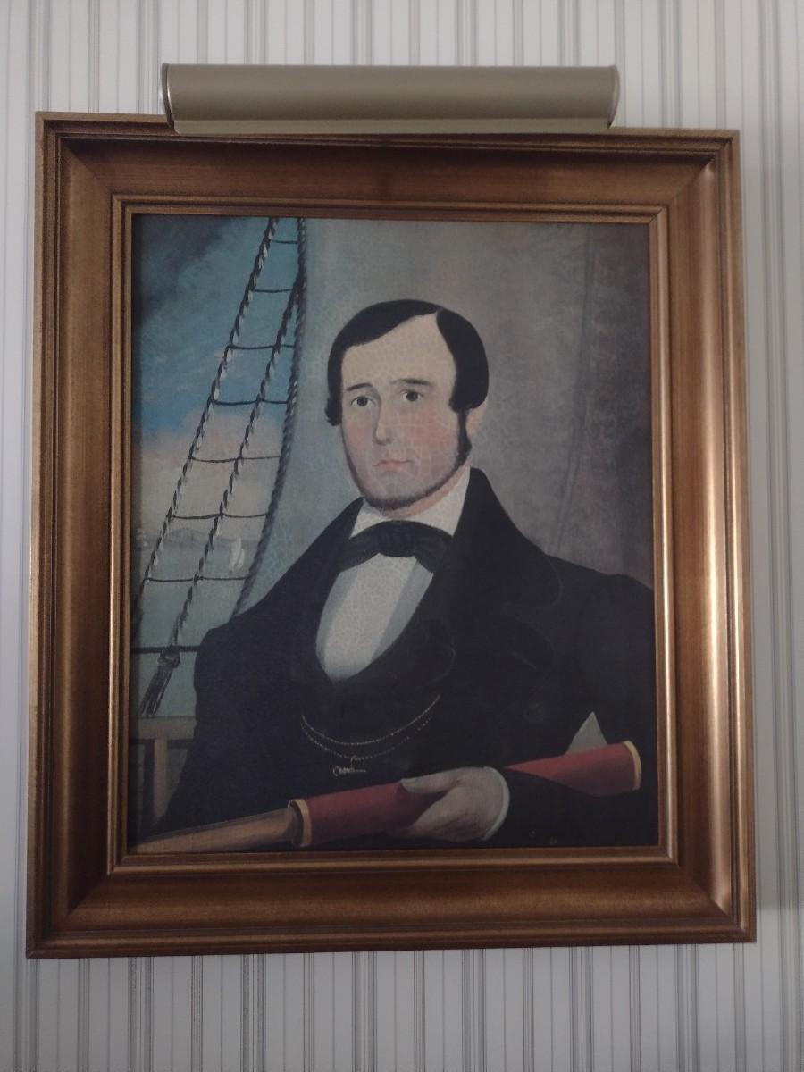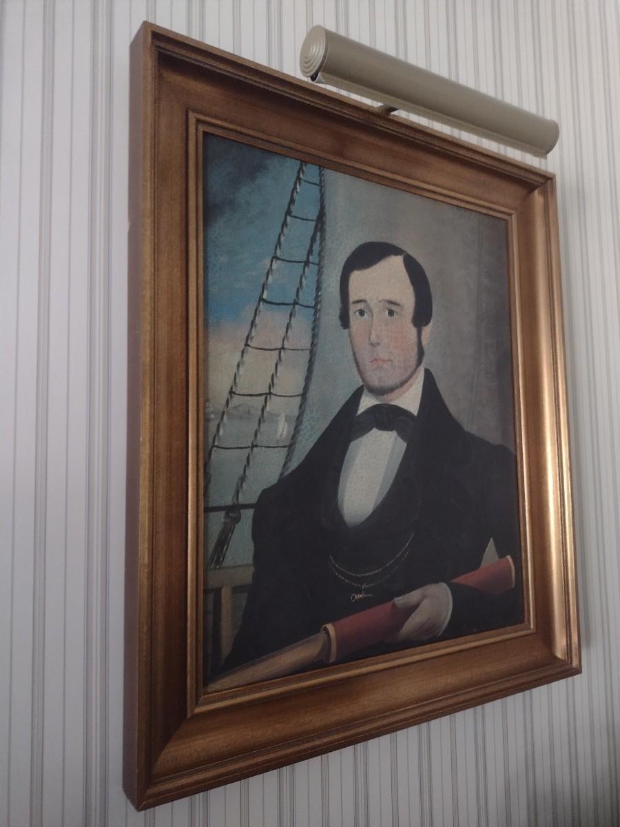 Framed Art Colonial Sea Captain Portrait Reproduction Print with Accent Light