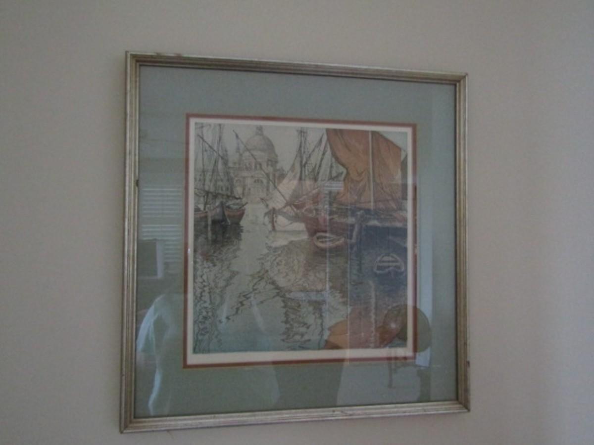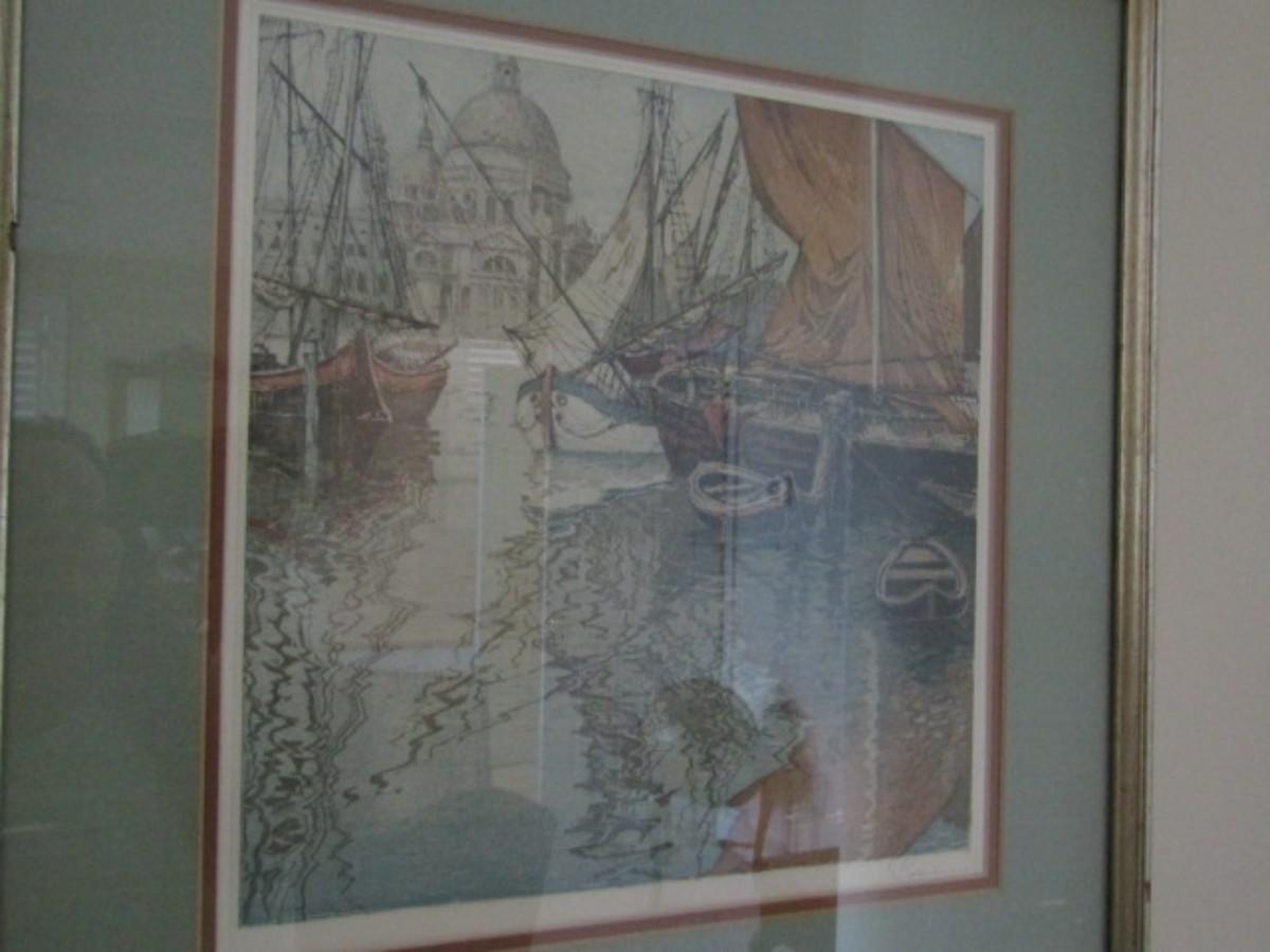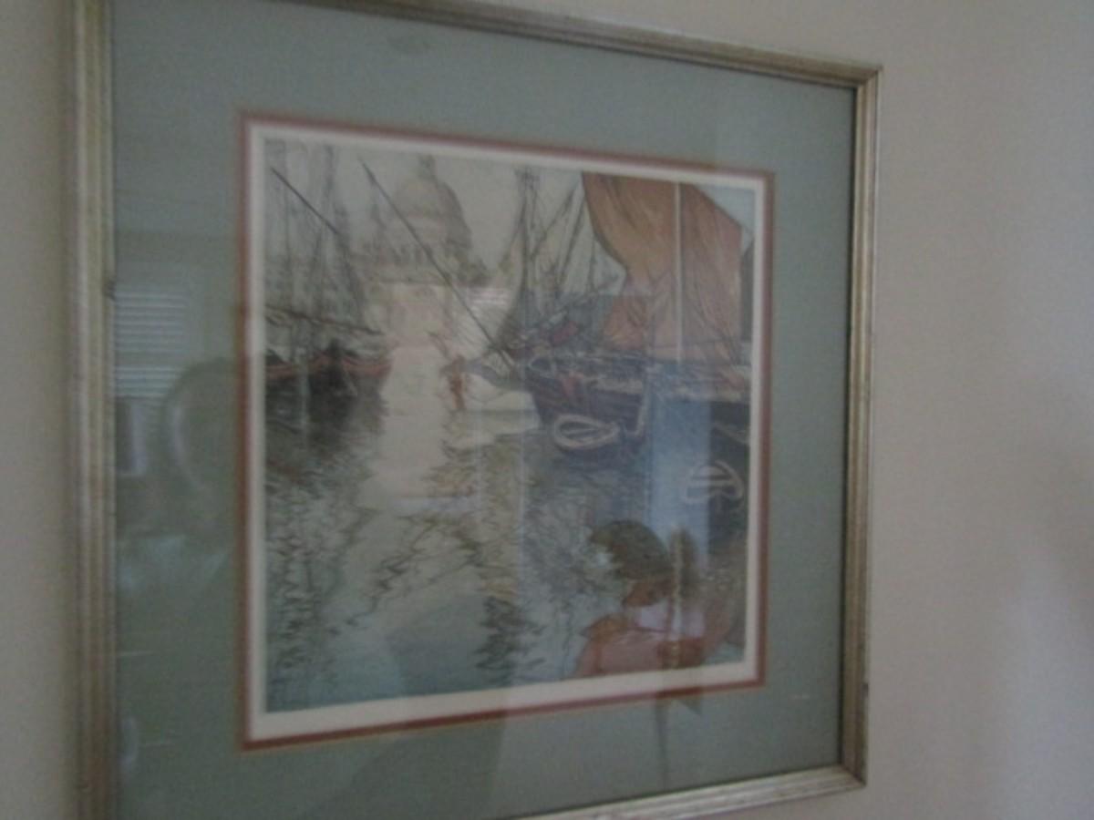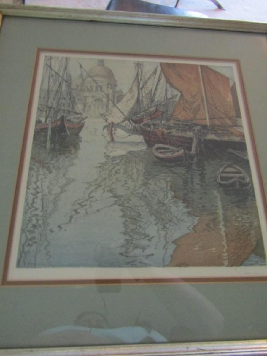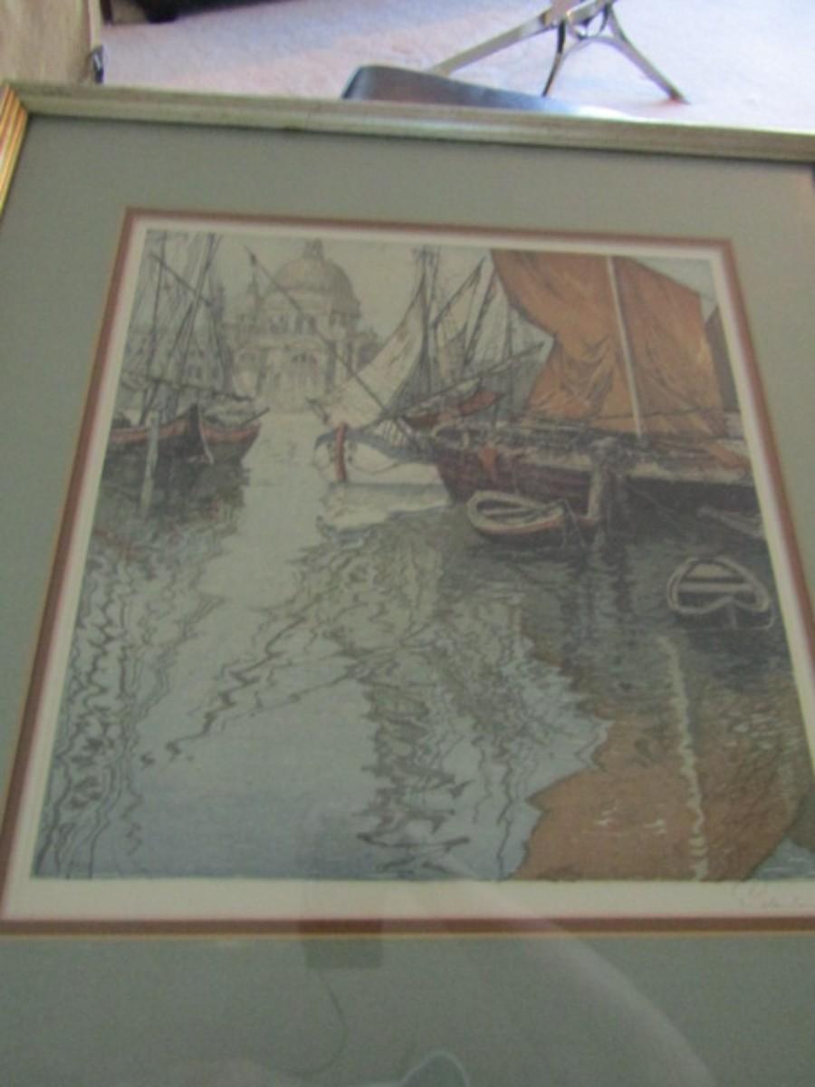 Framed Art Color Etching Print 'Venice Sailboats ' Signed by Josef Eidenberger