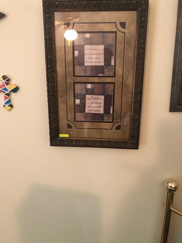 Matted art work with inspirational dreams and believe in a beautiful brown frame