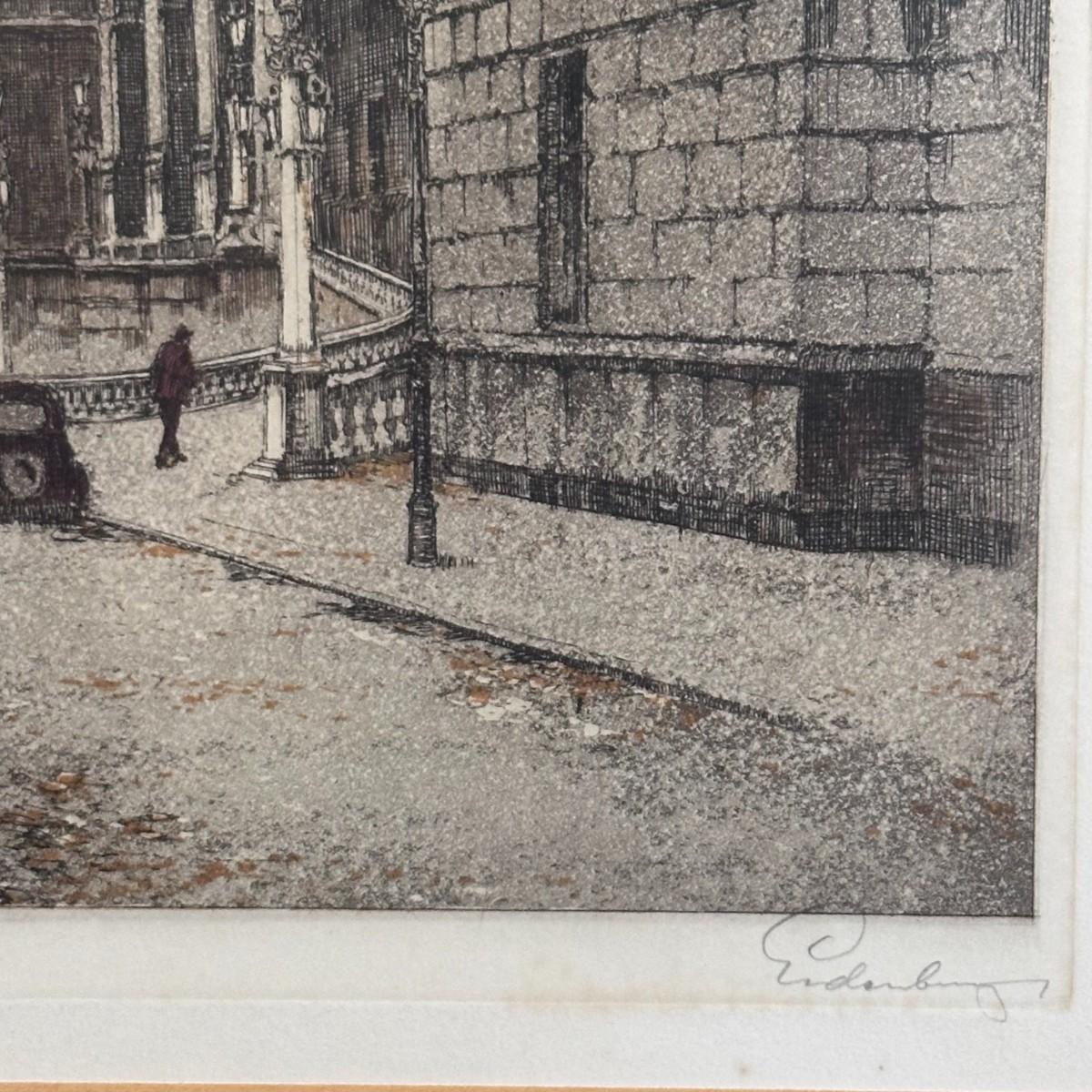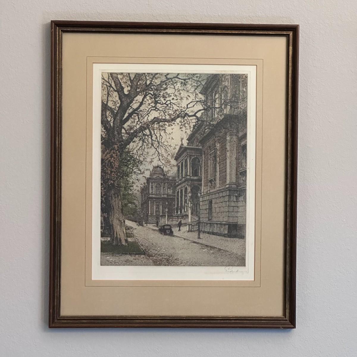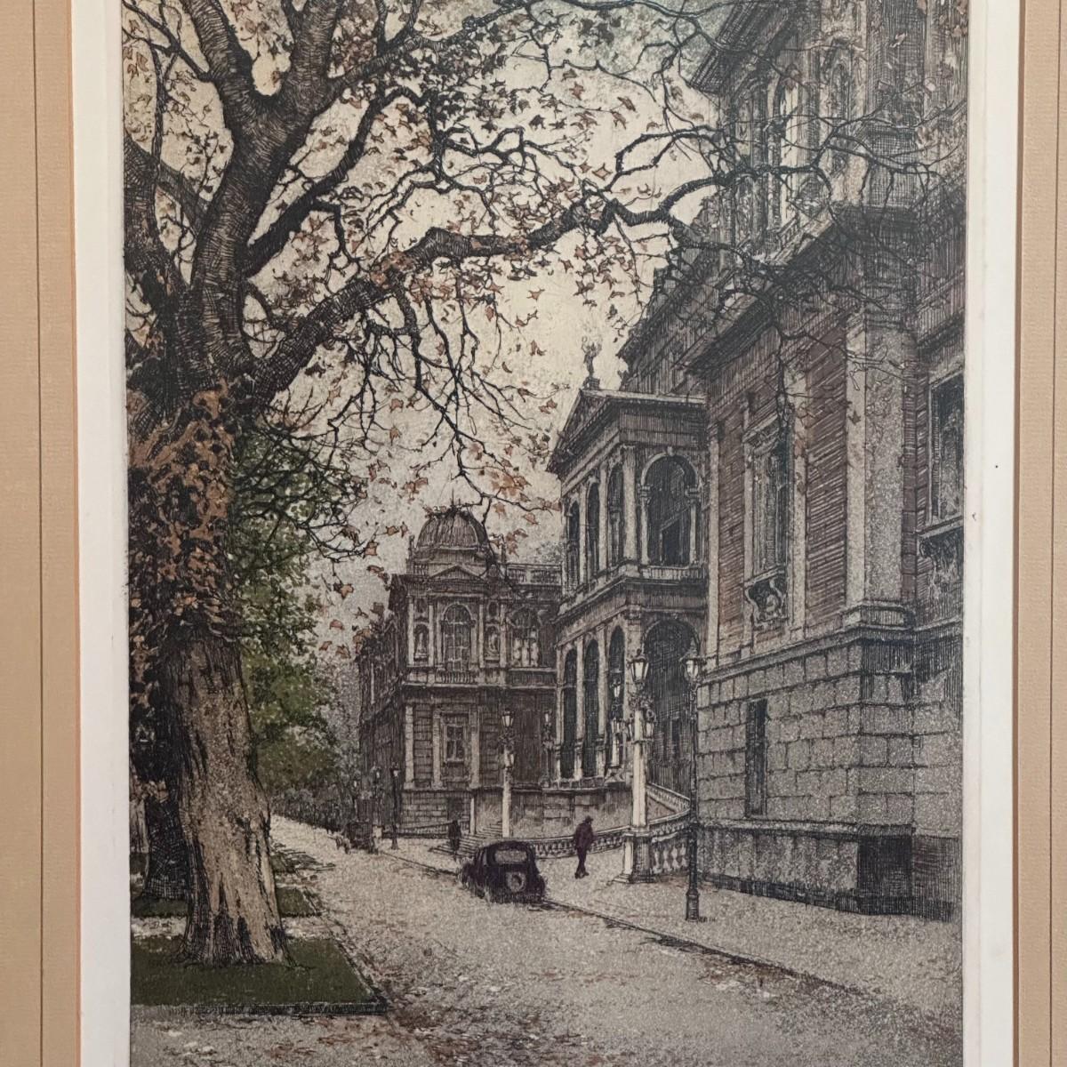 Etching of the University of Vienna by Austrian artist Josef Eidenberger.