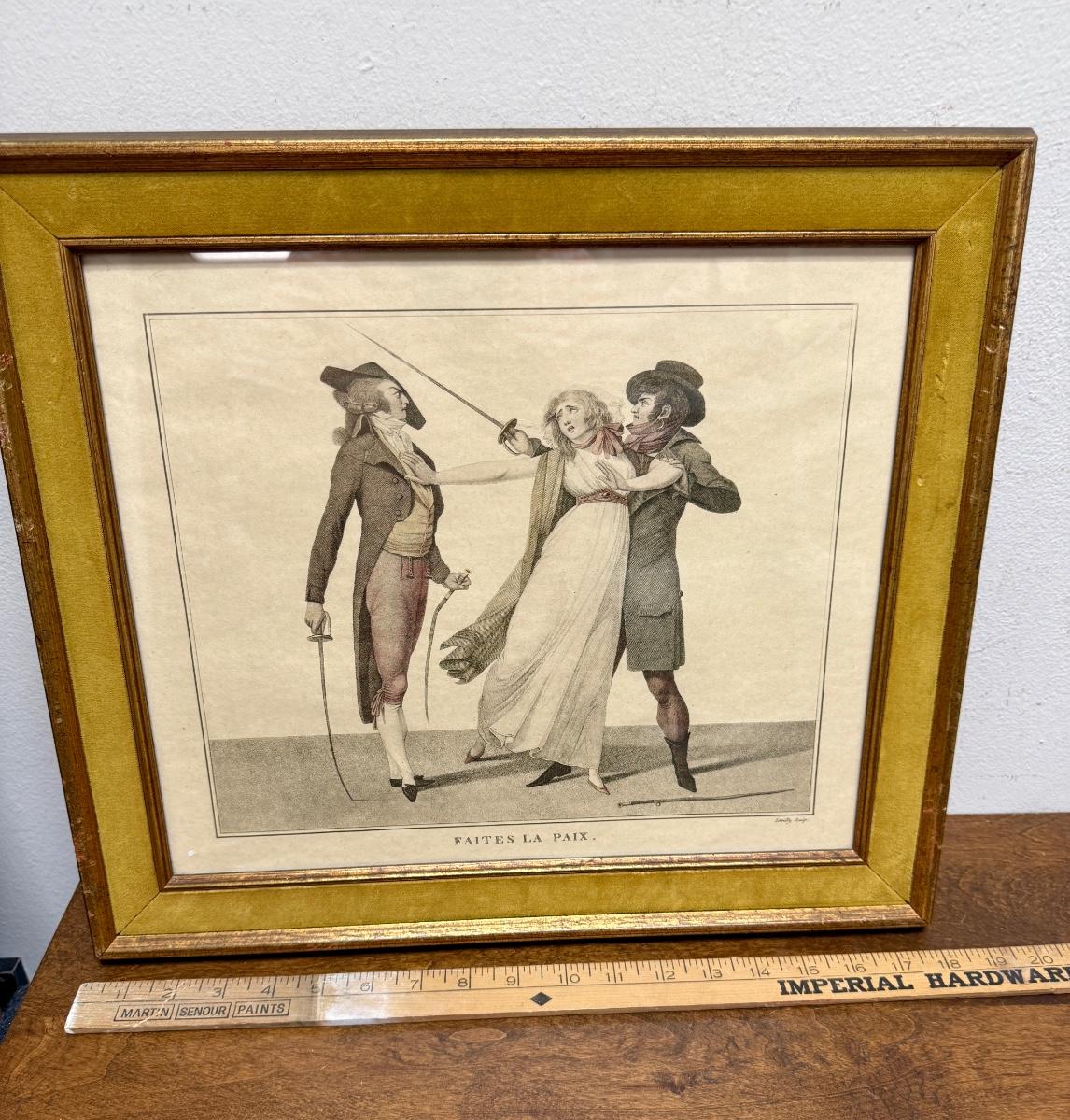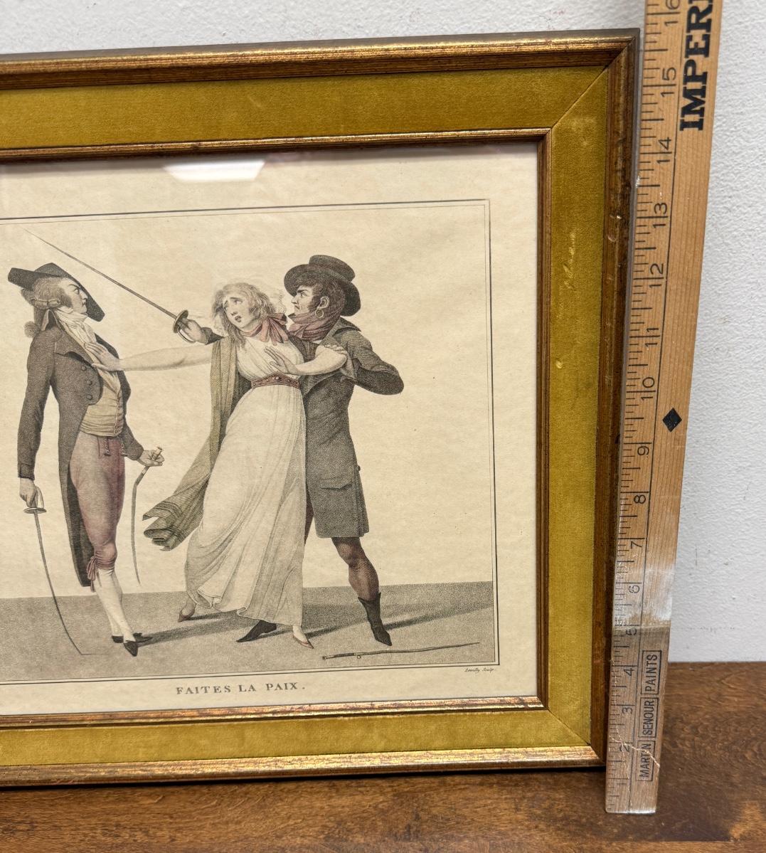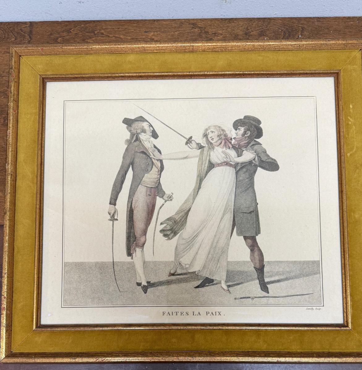 A framed lithograph of an engraving by French artist Jacques Philippe Levilly (active 1780-1800). Condition: good.