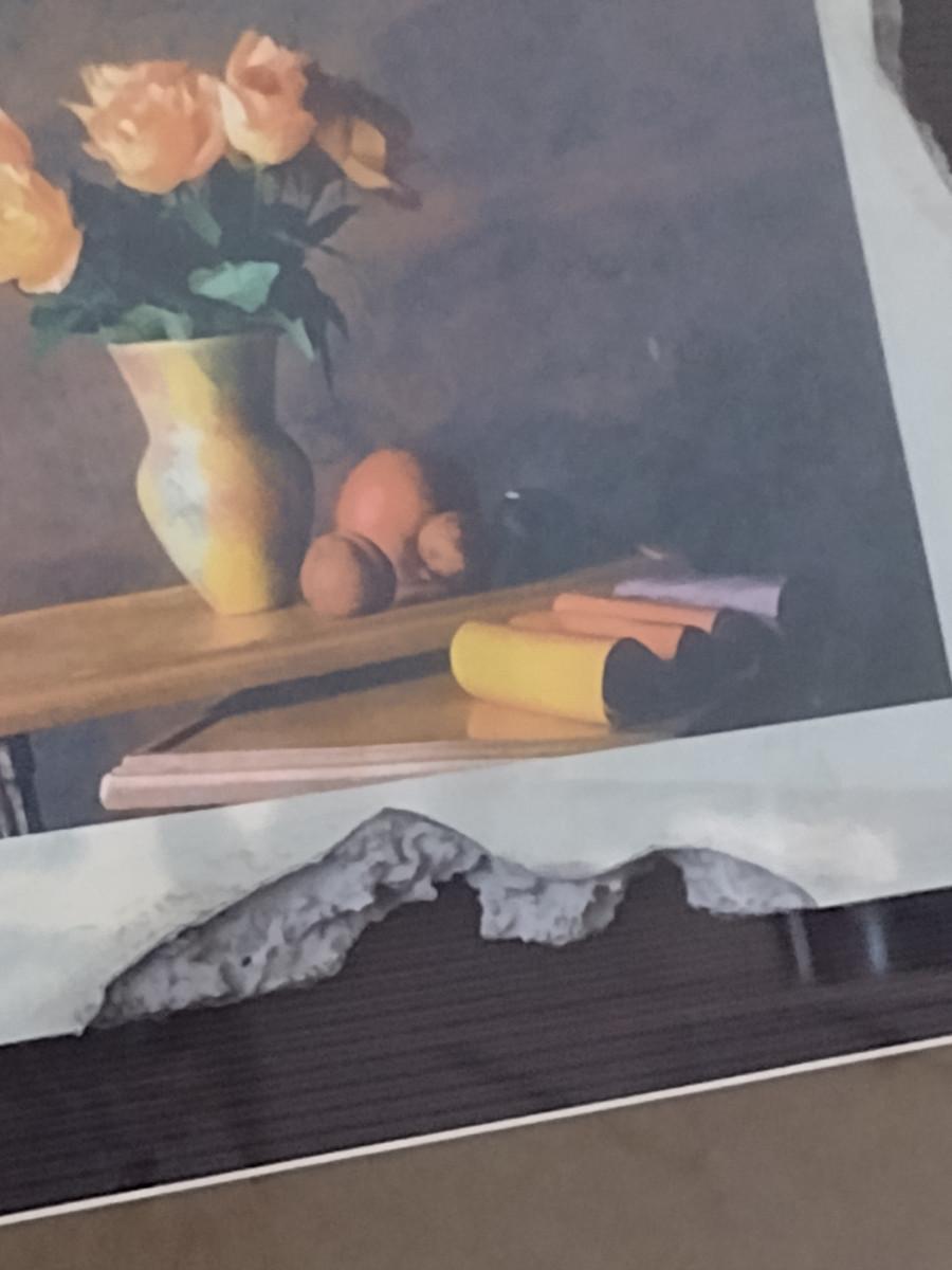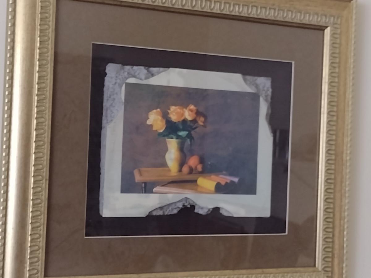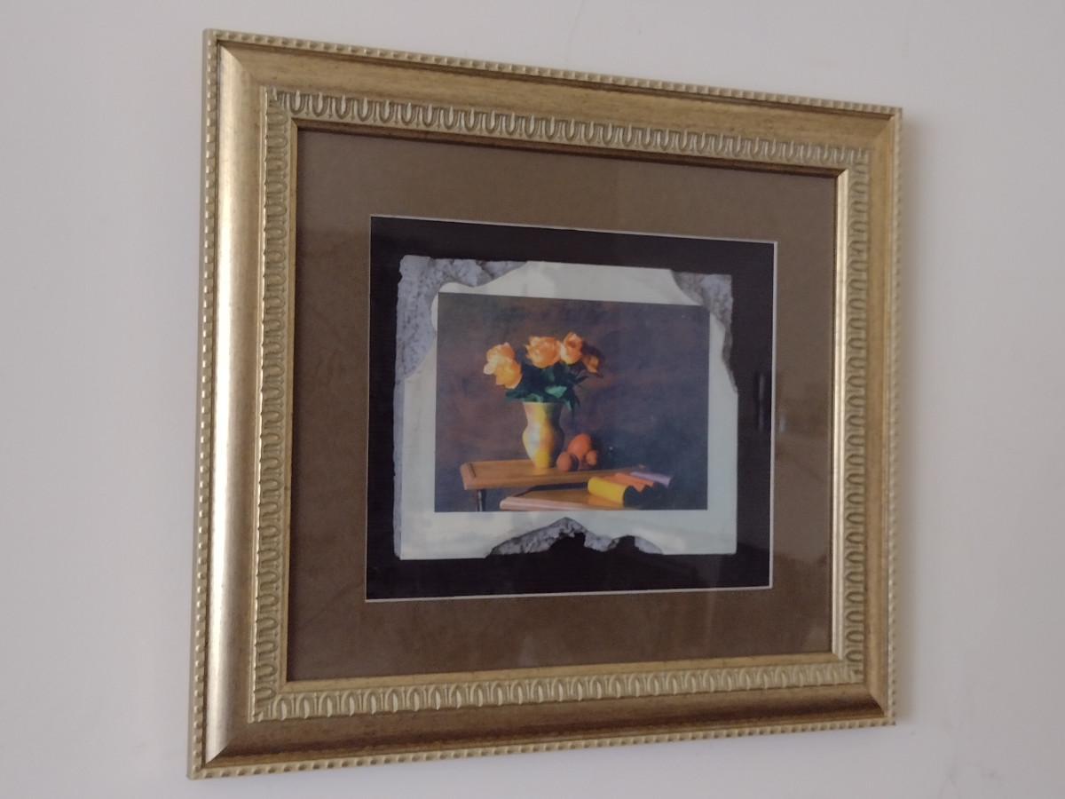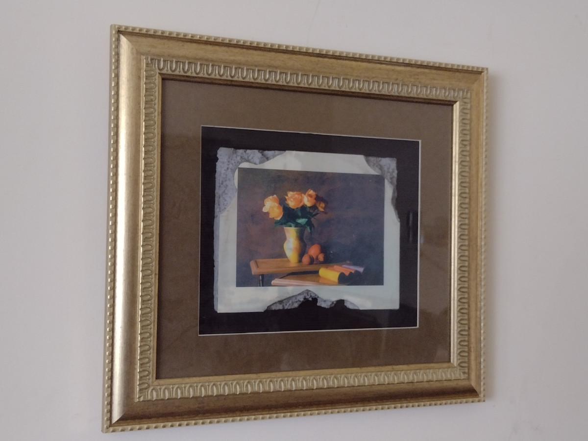 Framed Art- Floral Design on Faux Stone/Tile- Approx 17 1/4" x 20 1/4"