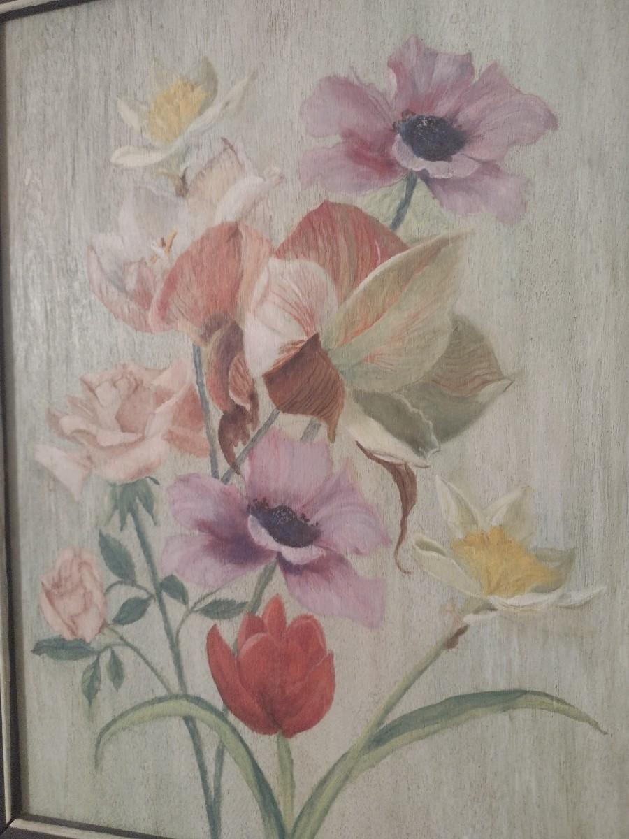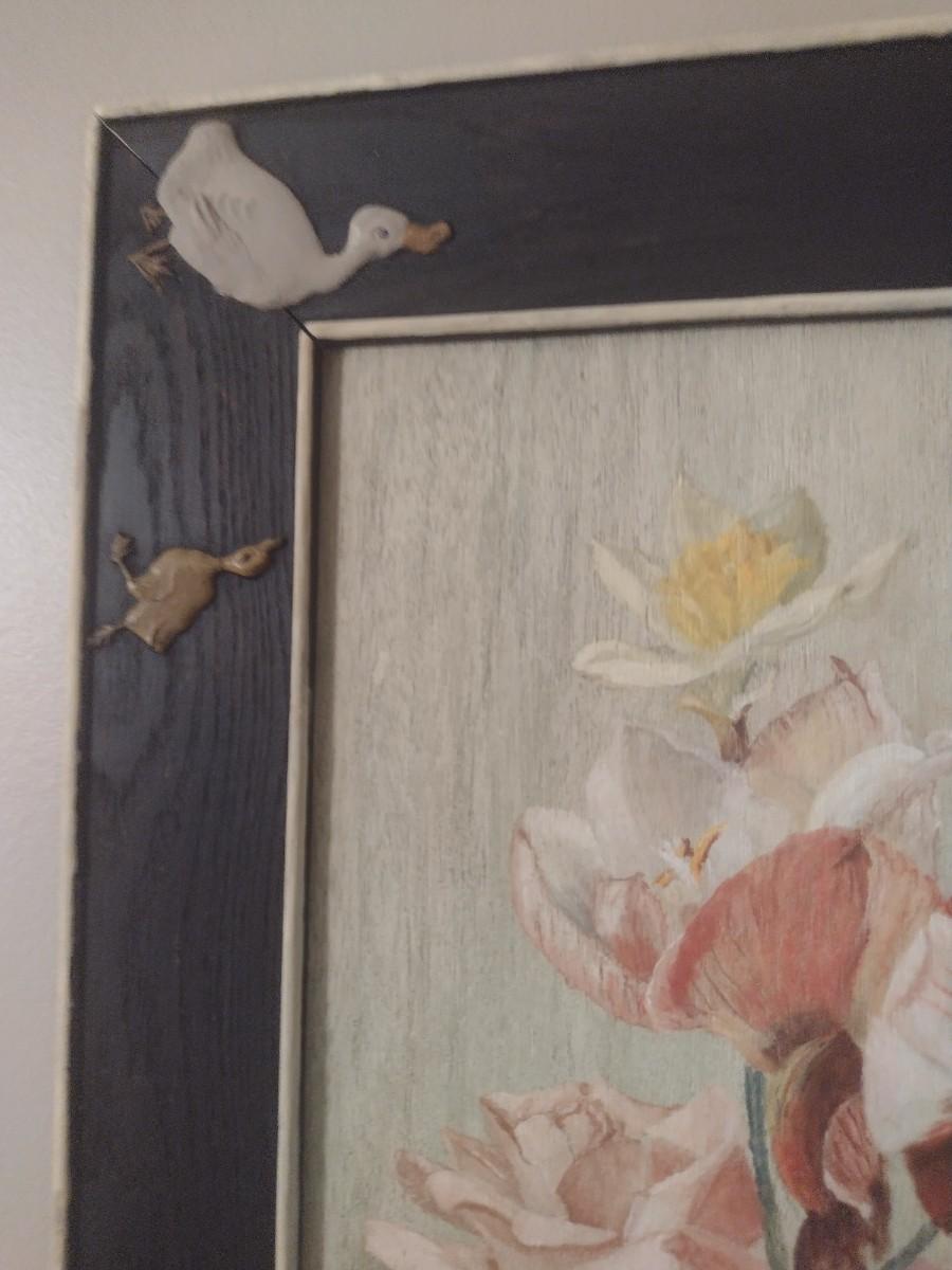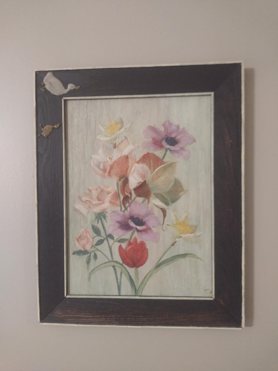 Framed Art Floral Theme on Wood Canvas