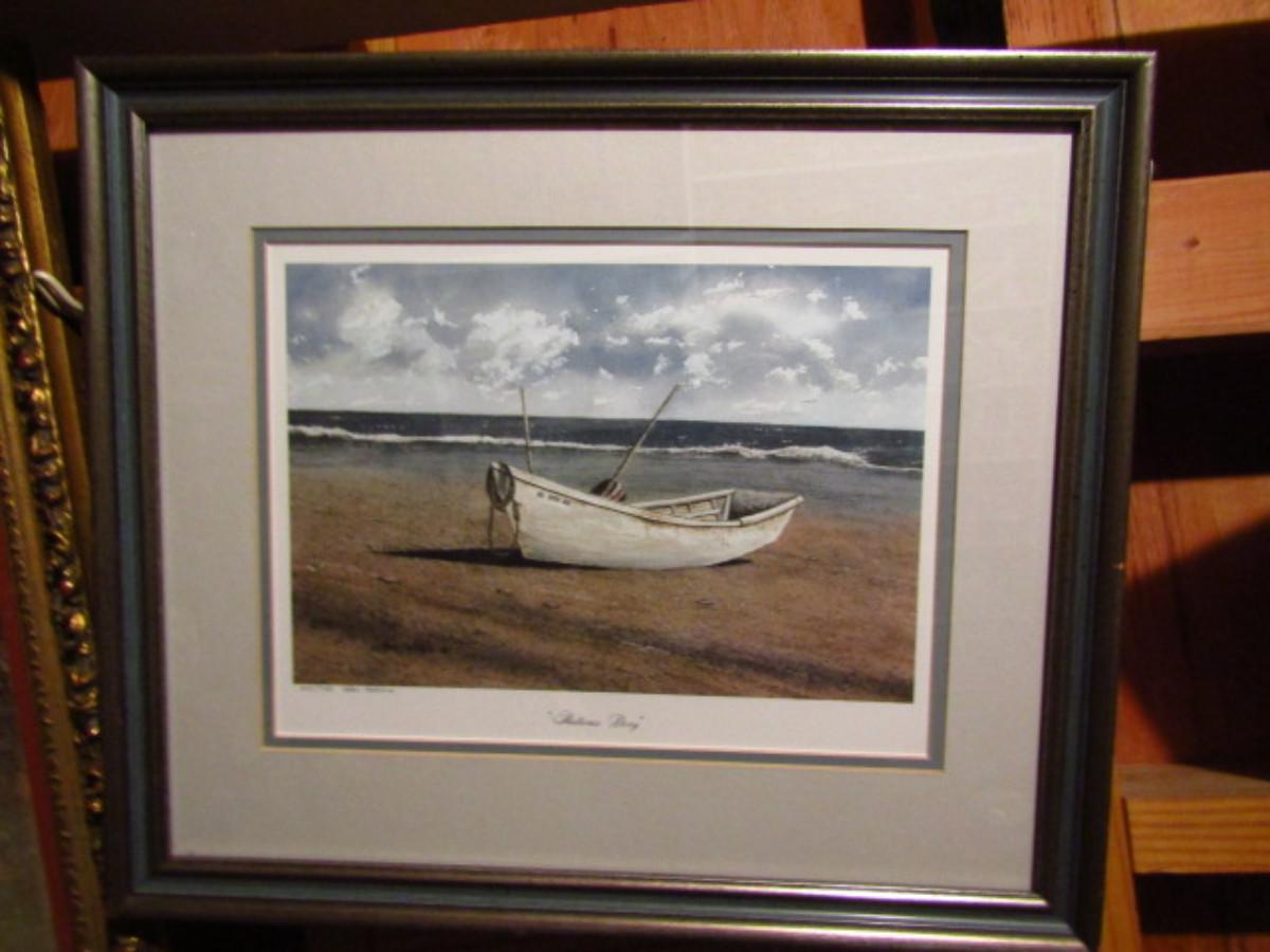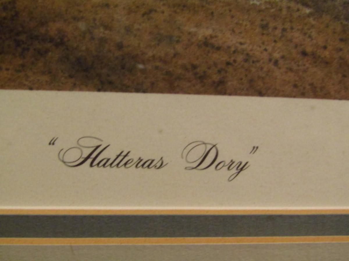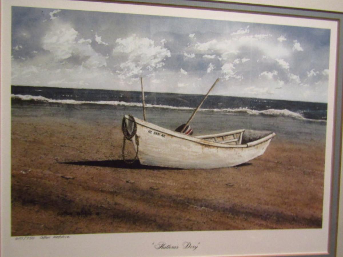 Framed Art Print- 'Hatteras Dory' by Cotton Ketchie- Signed and Numbered- Boat on Shore (#567)