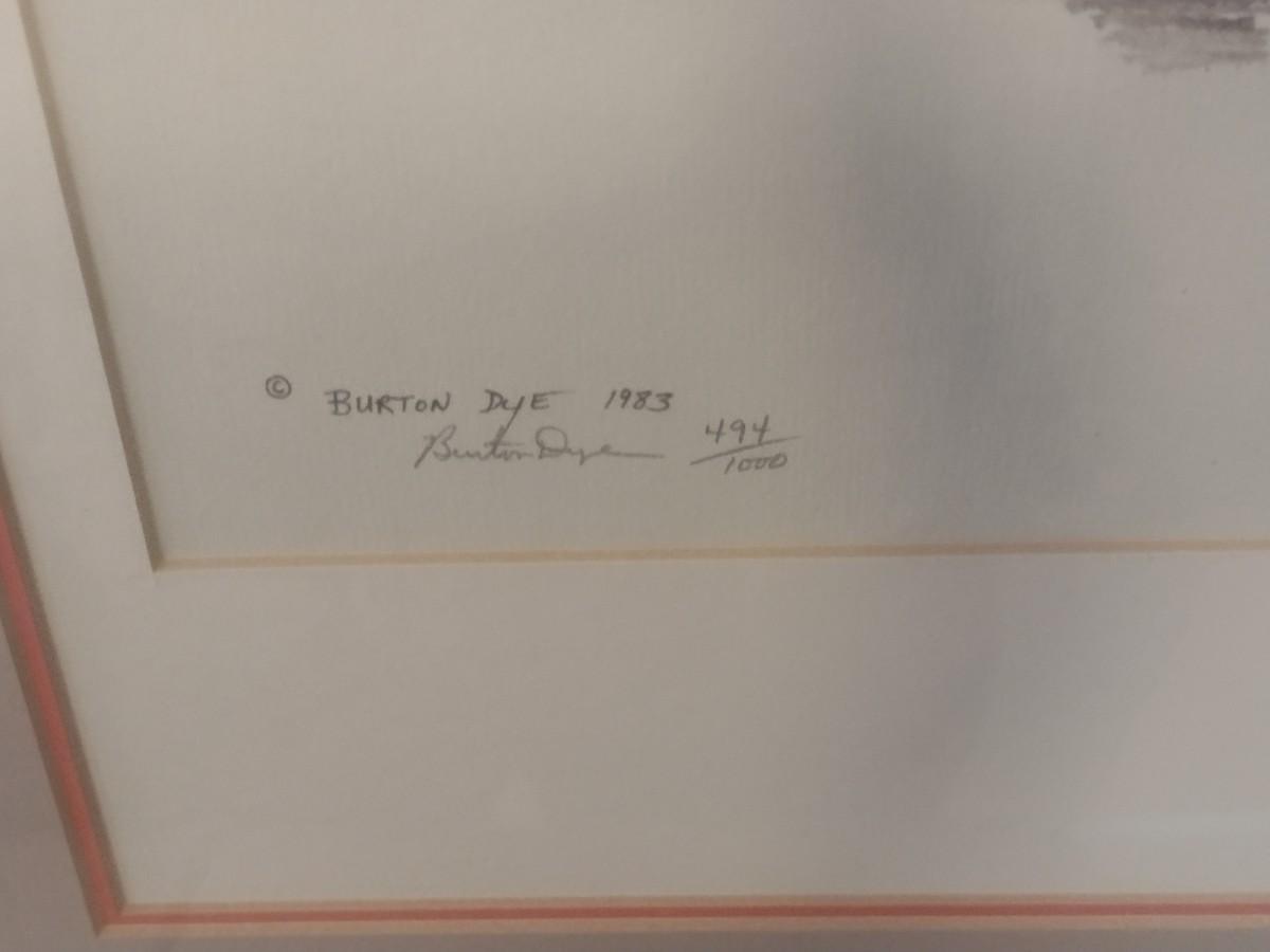 Framed Art Limited Edition Print by Burton Dye 494/1000. Shipping is by third party only such as UPS Store. Auction firm will make sure item is available for buyer's shipper of choice to pick item up and who will do all packing and shipping for the buyer. Buyer agrees to pay all fees associated with the shipping of this item.