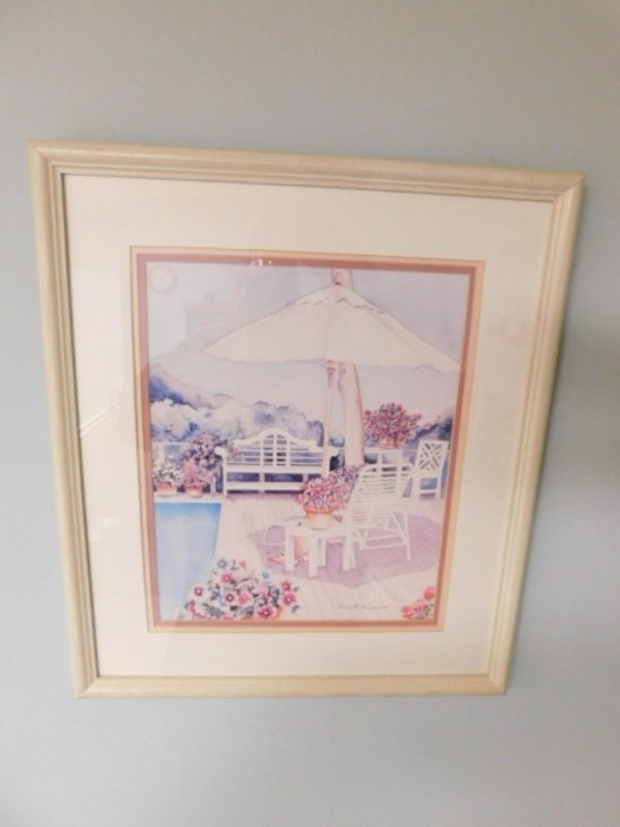 Framed Art Lithograph Garden Terrace by Marcy R. Chapman Shipping by third party such as UPS Store or Frontier Packing. Auction house will not personally ship. We will ensure item gets to the shipper of your choice.