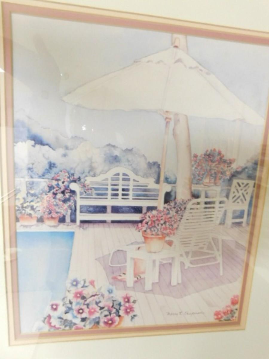 Framed Art Lithograph Garden Terrace by Marcy R. Chapman