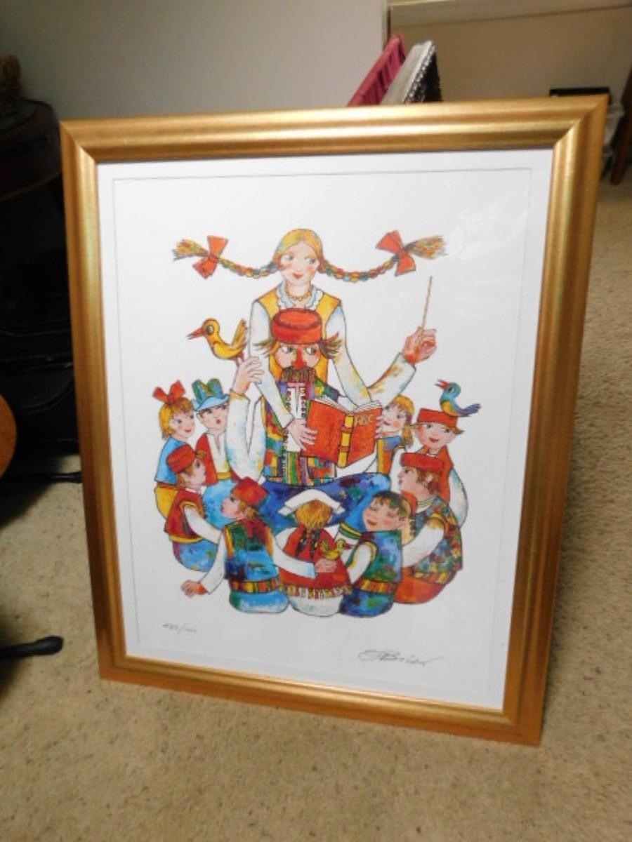 Framed Art Lithograph Limited Series Children's Lesson 489/1000 by Jovan Obican