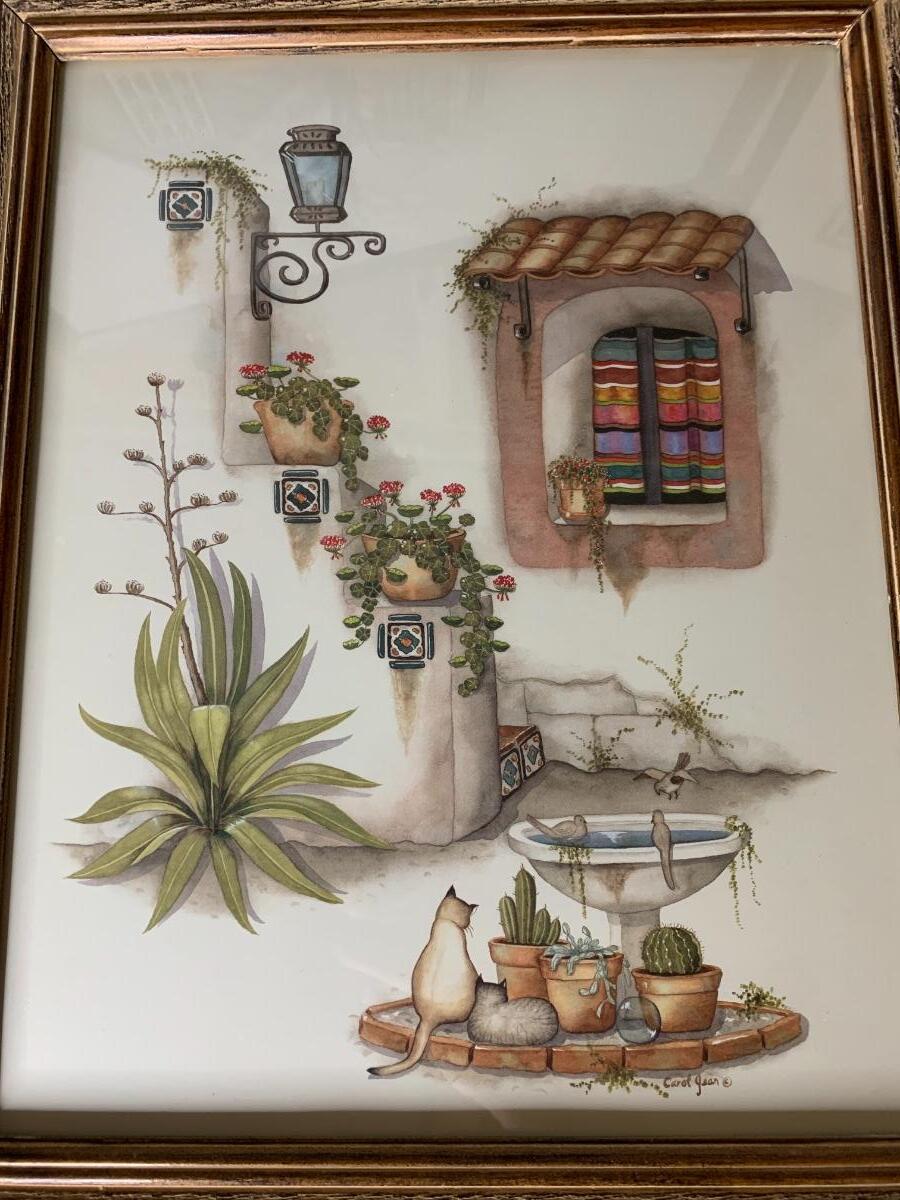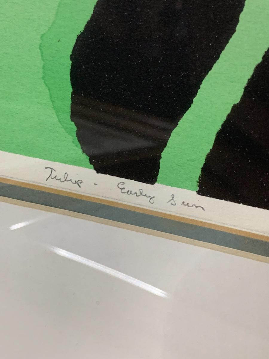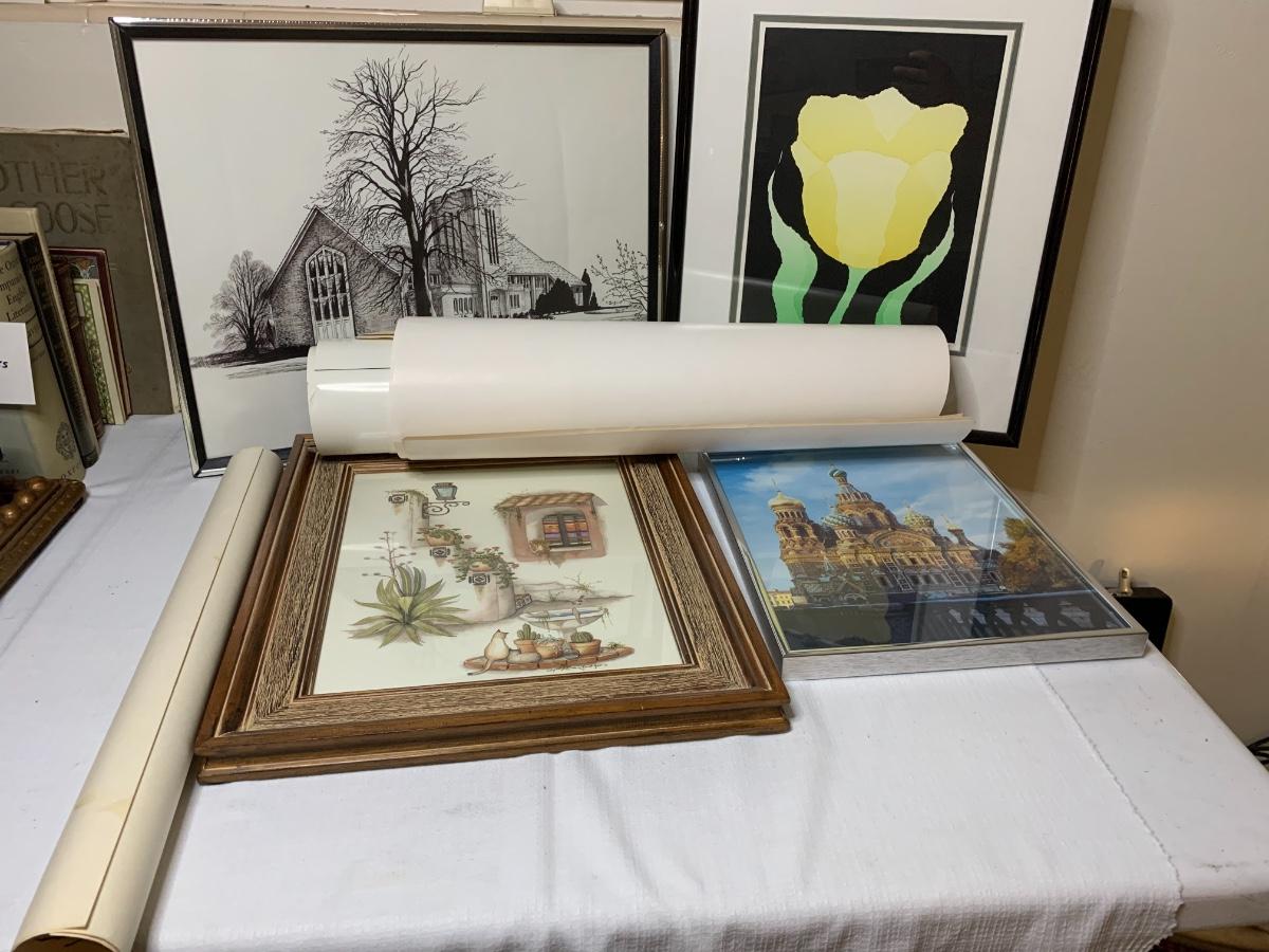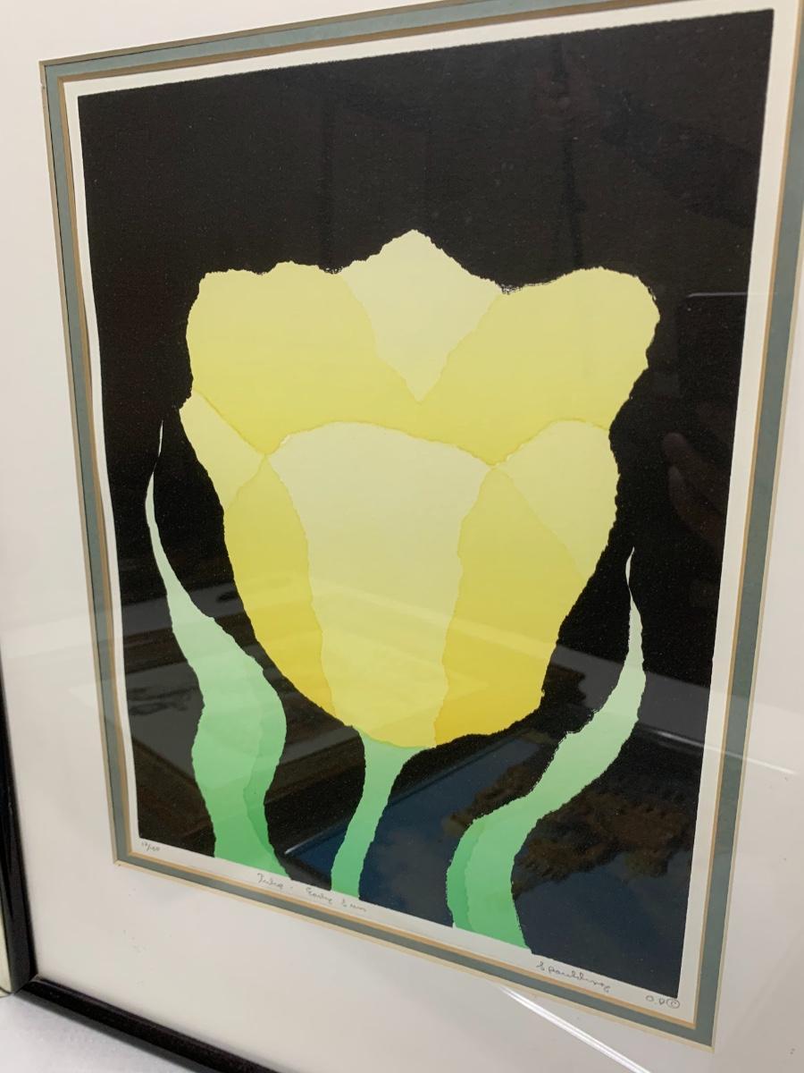 Misc collection of framed art, along with a few poster prints and a frame and glass. Tulips is signed and numbered.