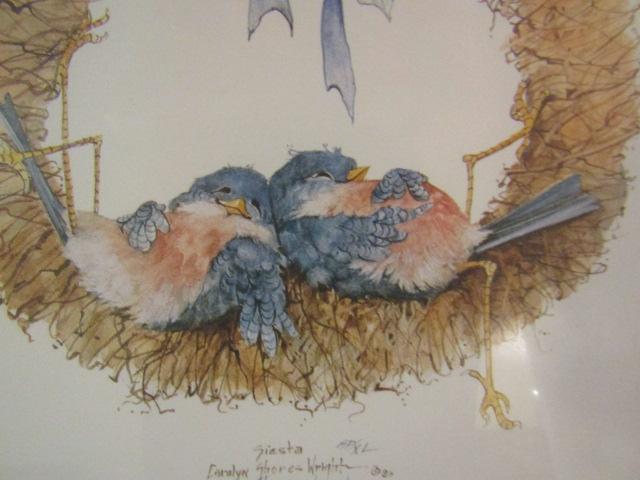 Framed Art- Lounging Blue Birds- 'Siesta' by Carolyn Shores Wright