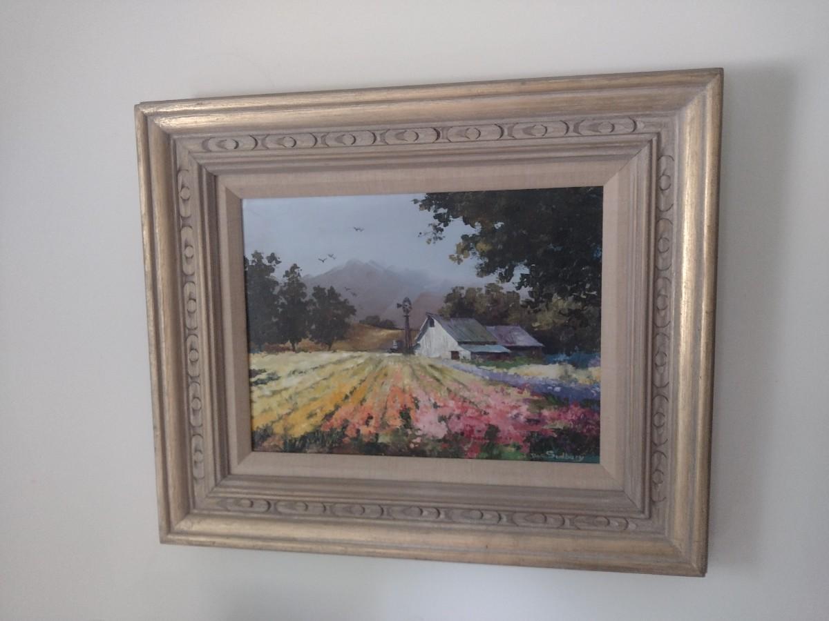 Framed Art Original Canvas by Dee Sudbury Barn in Meadow