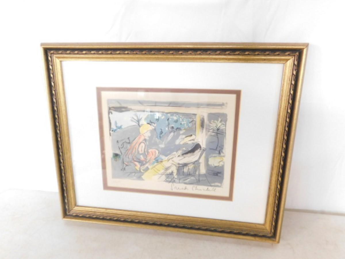 Framed Art Original Color Lithograph 'Sir Winston" by Sarah Churchill 401/450