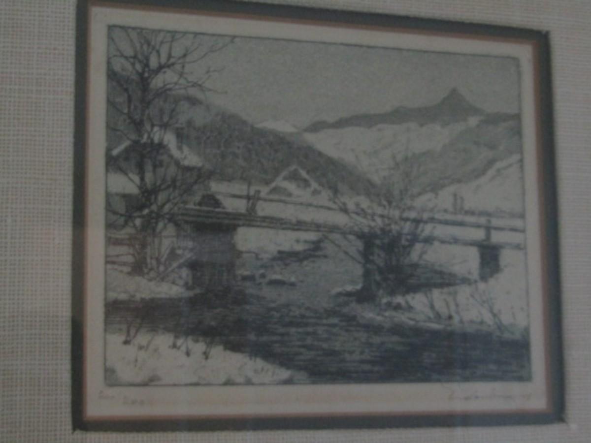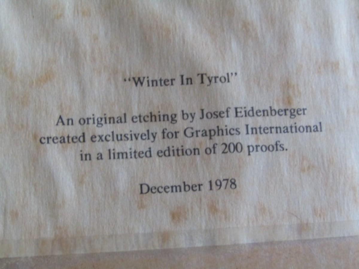 Framed Art Original Etching 'Winter in Tyrol' by Josef Eidenberger Proof Edition 200/200