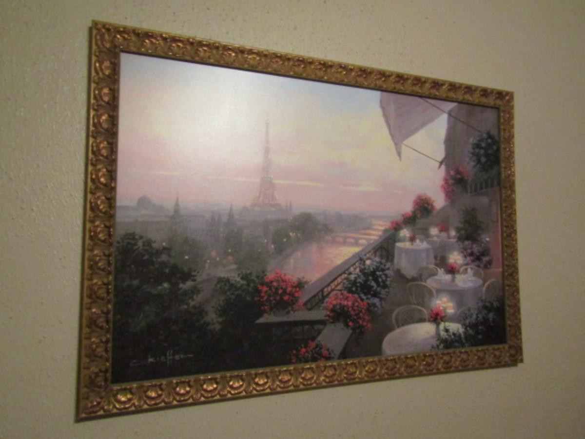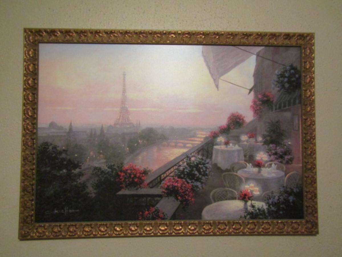 Framed Art- Parisian Cafe with Eiffel Tower at a Distance