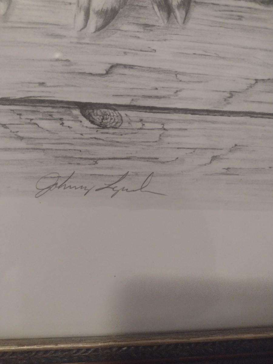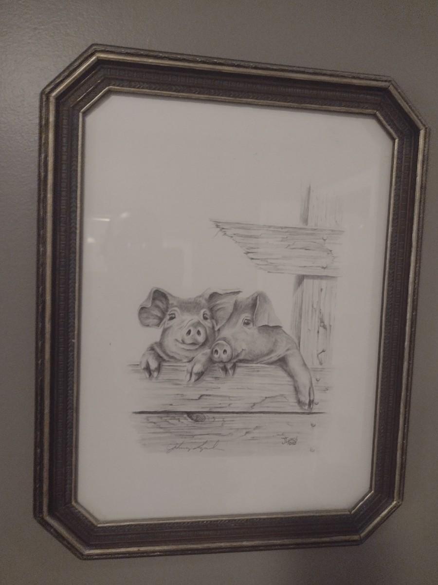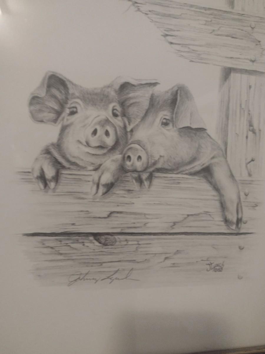 Framed Art Pencil Drawing Pig Couple by Johnny Lynch