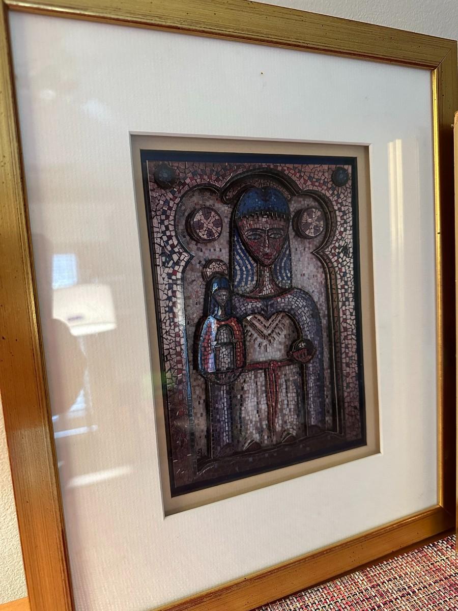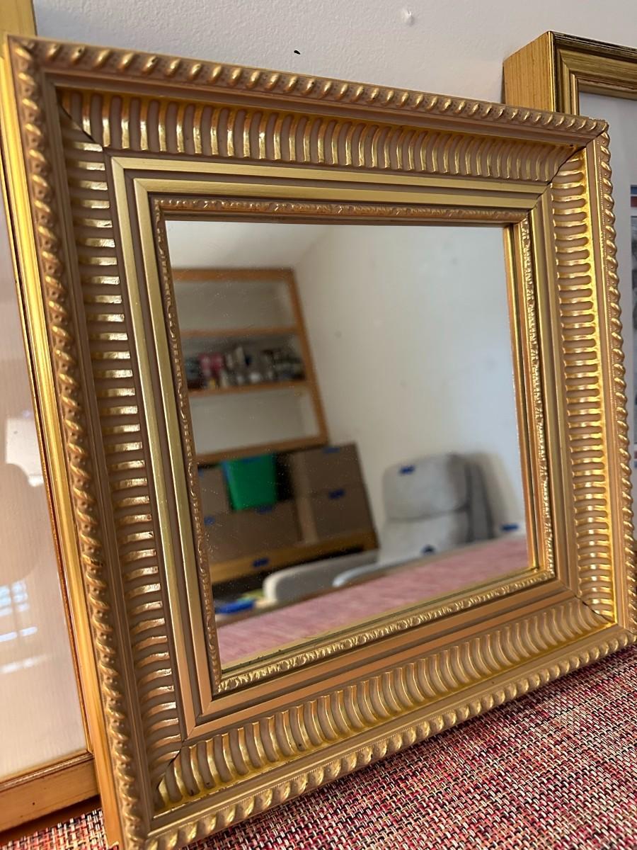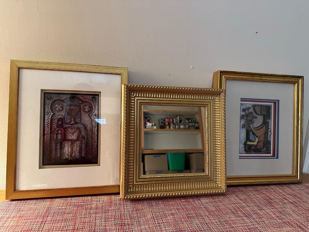 2 - 11.5" x 13.5" Framed, Shadowboxed Art w/Gold Frames, Handmade Exclusively for Tendere by Renee. 1 - 11.5" x 11.5" Mirror with Gold Frame