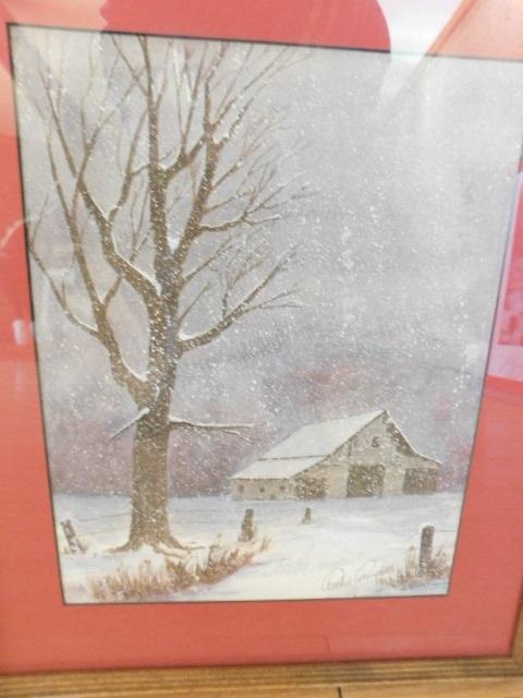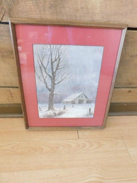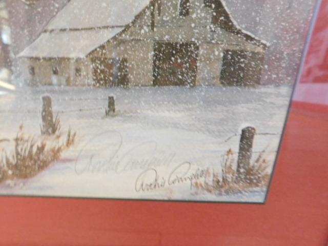 Framed Art Print Barn in Winter Signed By Artist Archie Campbell Brown