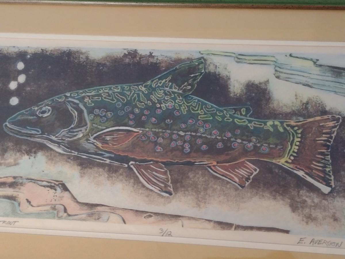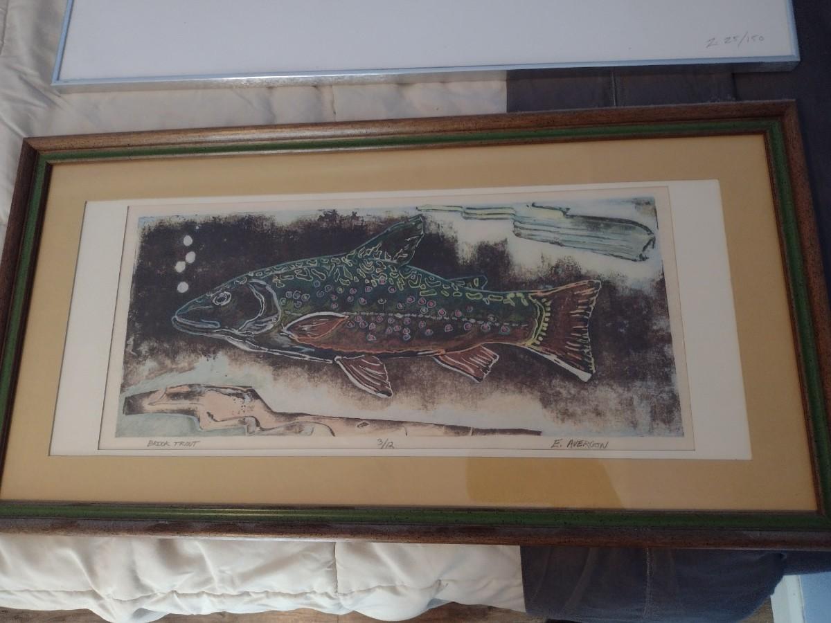 Framed Art Print 'Brook Trout' by E. Avergon 3/12 (T)