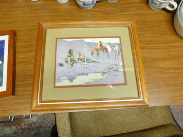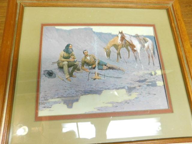 Framed Art Print Cowboy Desert Campfire Scene 16"x14"