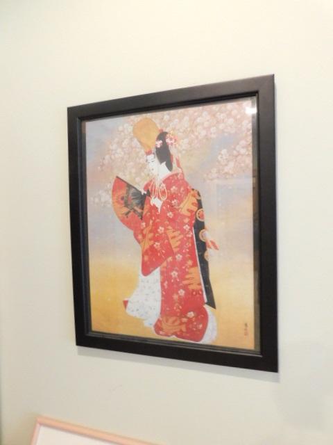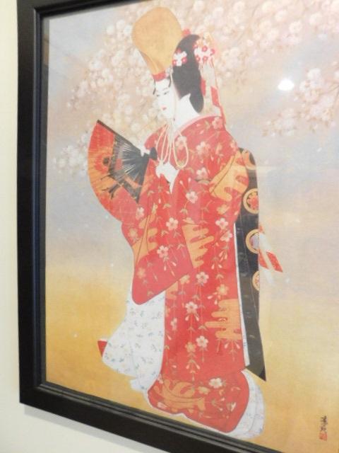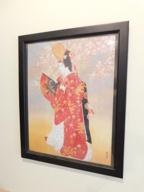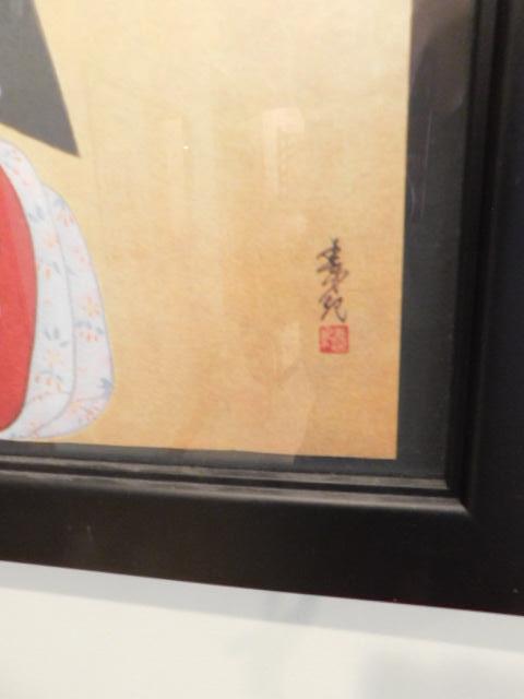 Framed Art Print Cultural Theme Signed by Artist Open Fan
