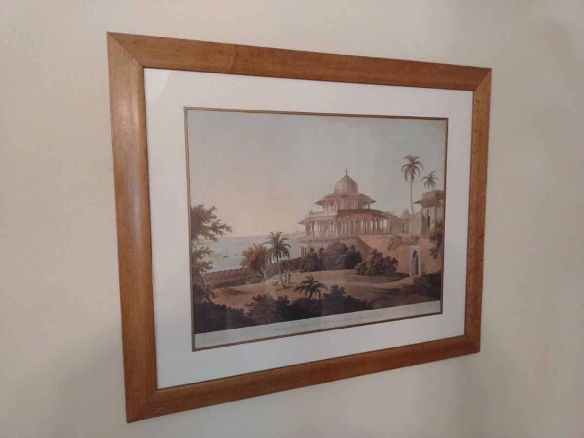 Framed Art Print Engraving Thomas Daniell 1795 'The Chalees Satoon in the Fort of Allahabad on the River Jumna'. Shipping by third party such as UPS Store or Frontier Shipping. Auction house will not personally pack or ship but will ensure your item is delivered to the shipper of your choice.