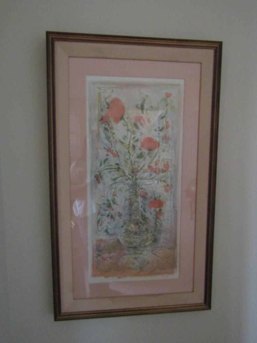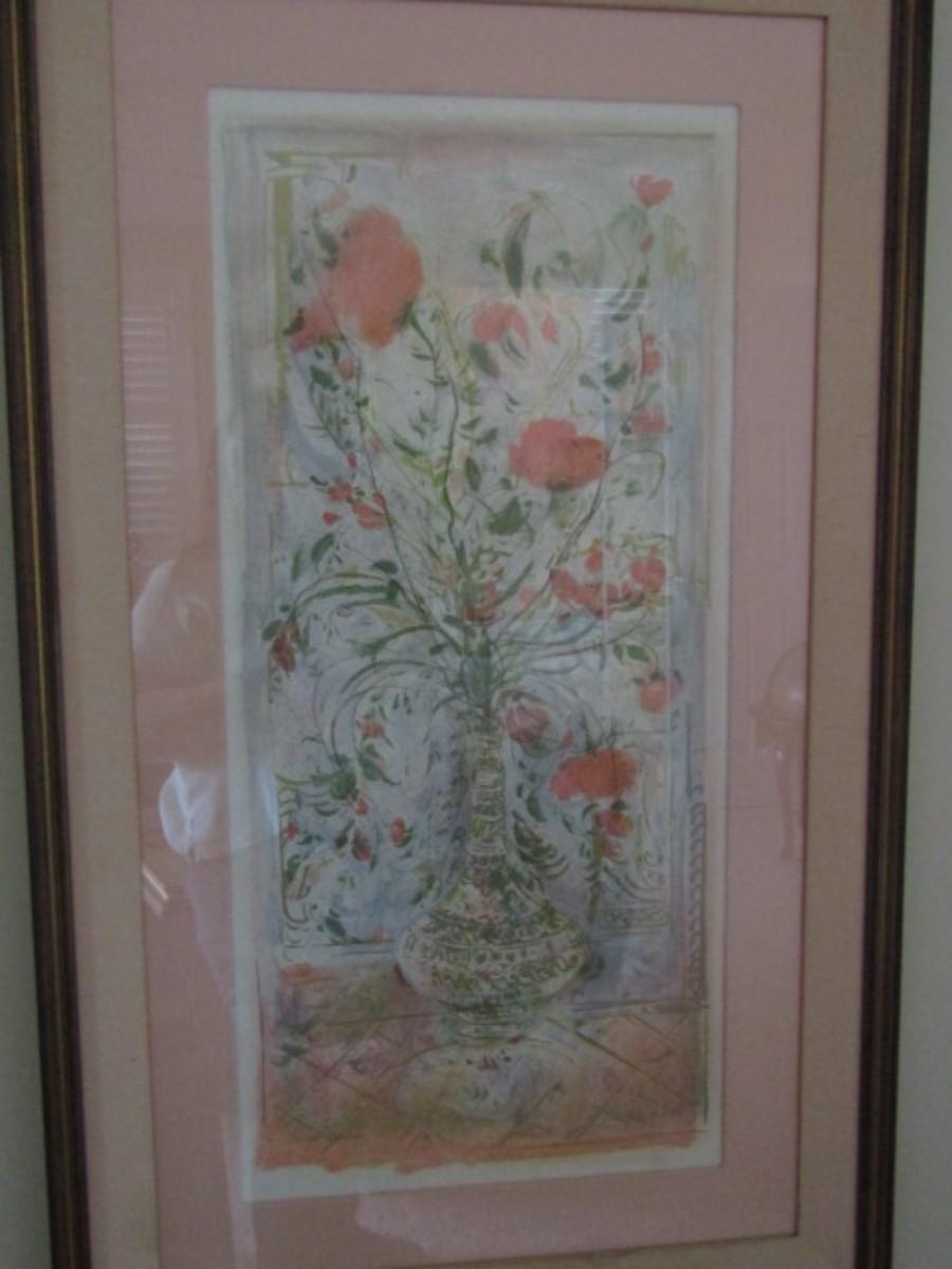Framed Art Print Flower Vase Signed by Edna Hibel