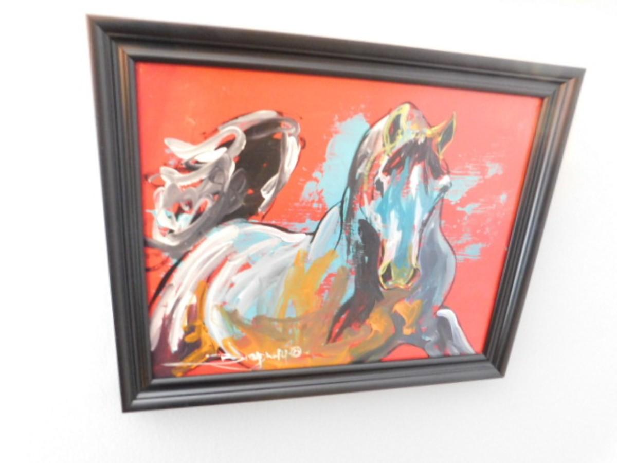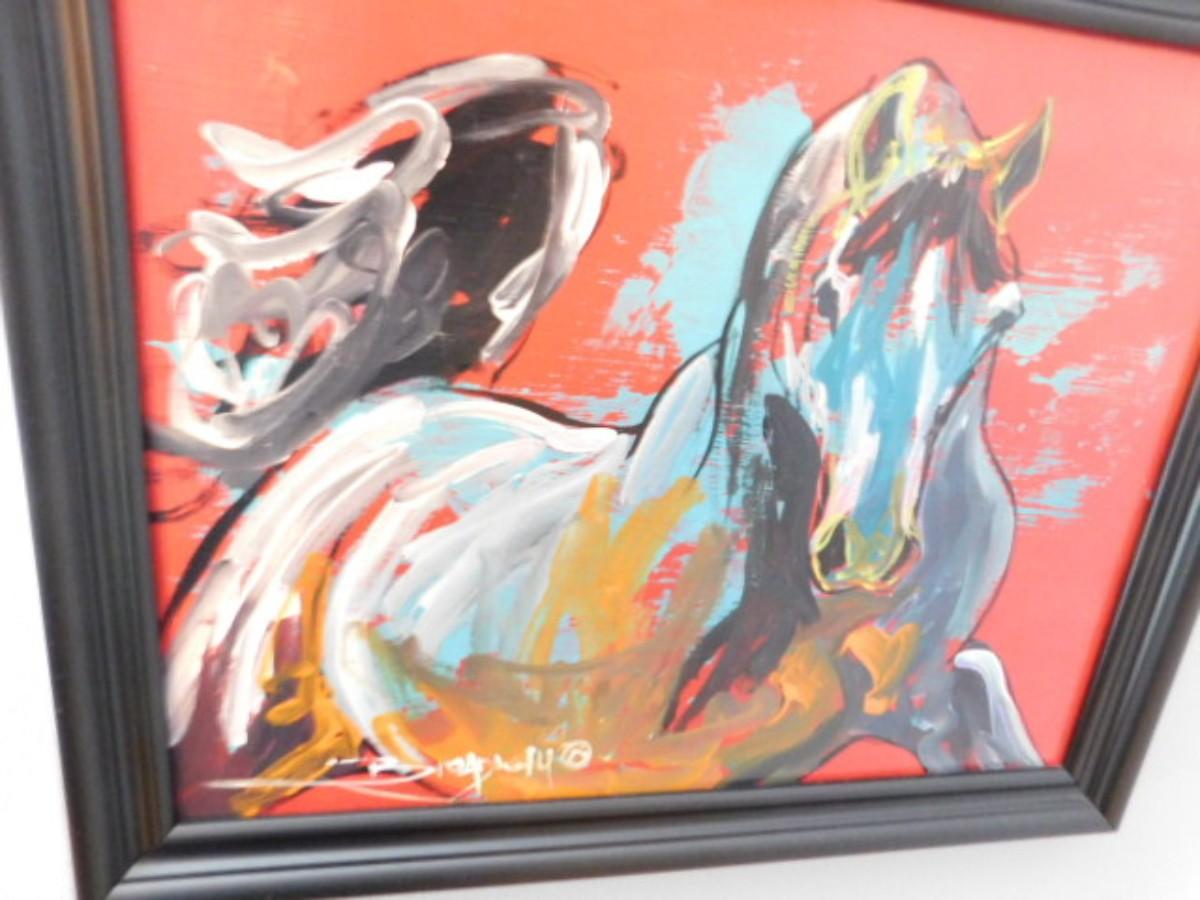 Framed Art Print Galloping Horse Signed by Artist