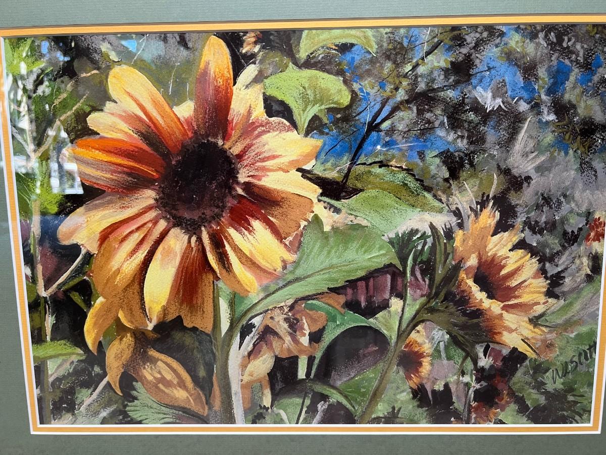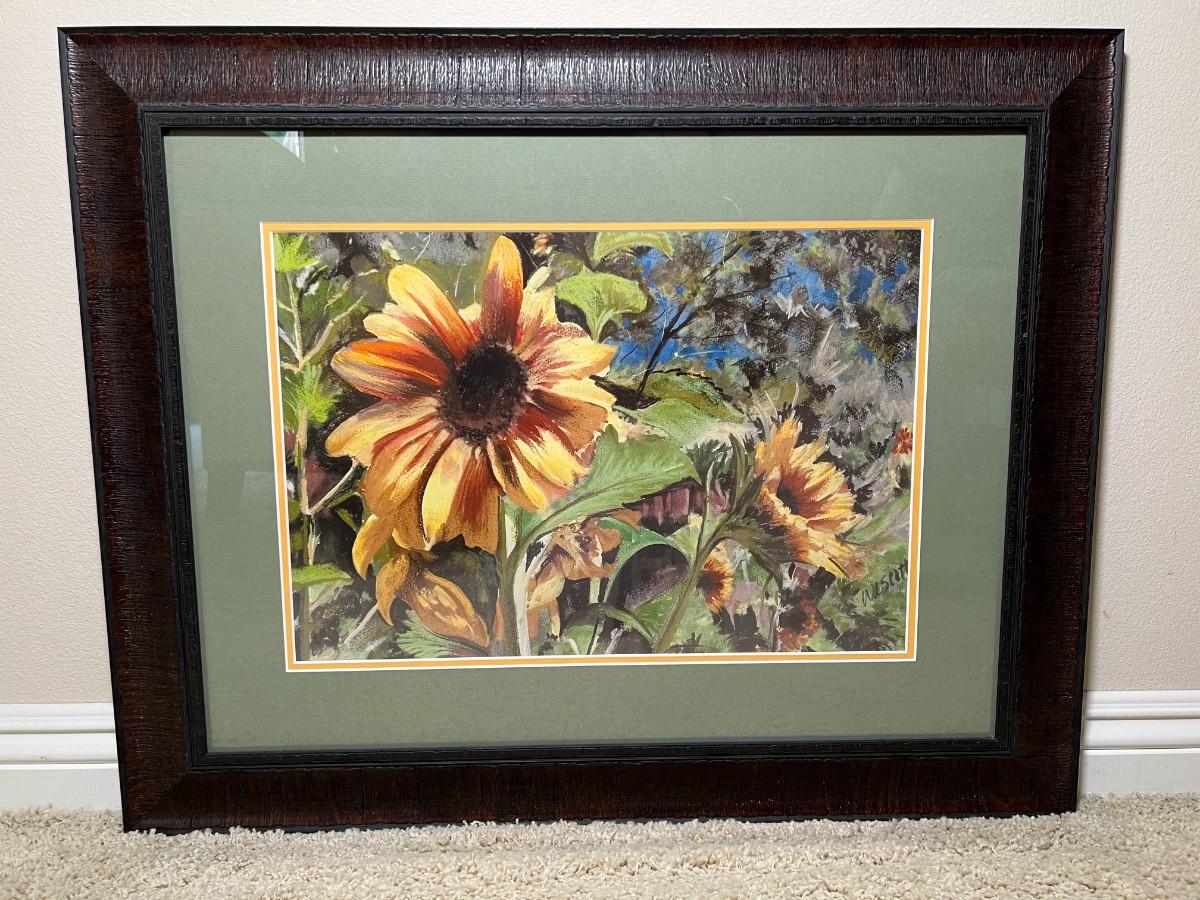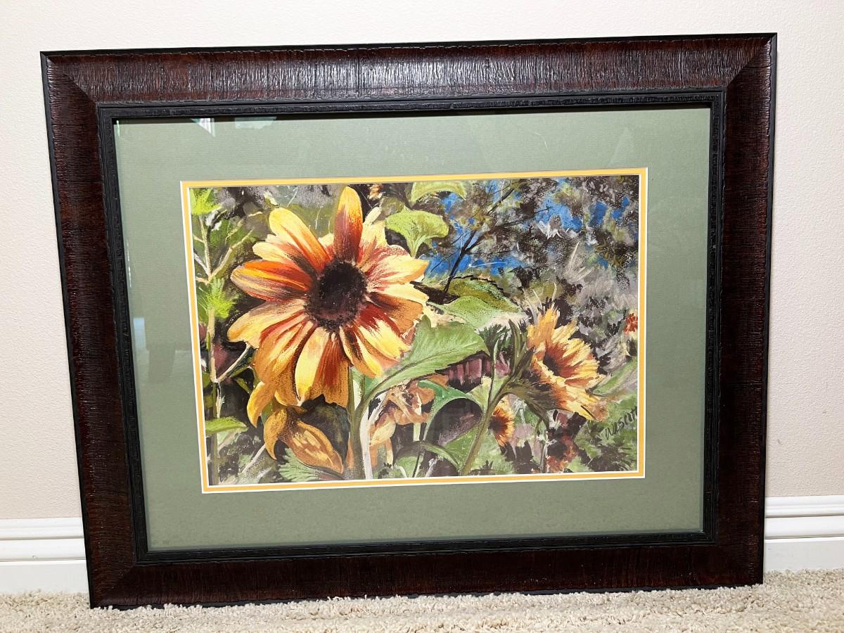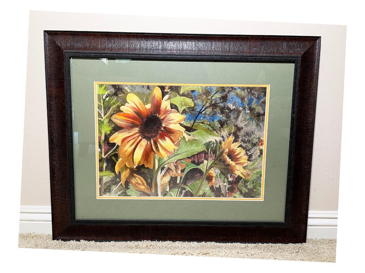 Framed Art Print Oil Pastel Summer Nature Still Life Sunflowers