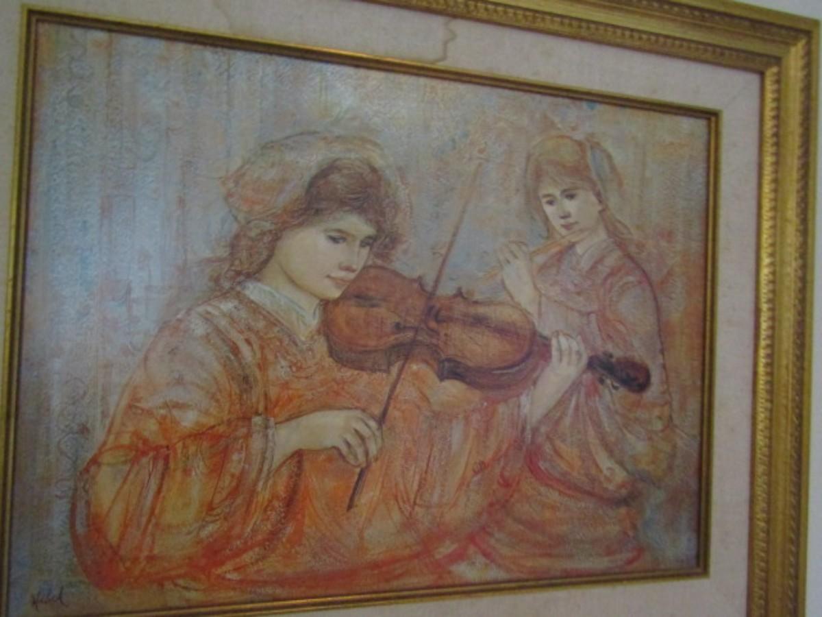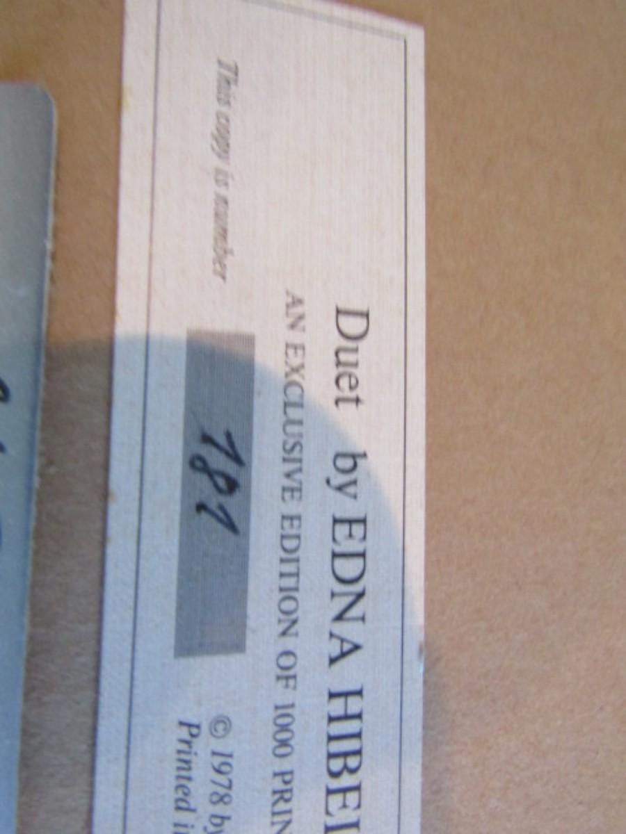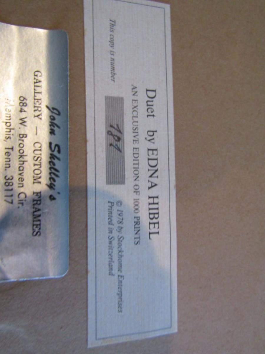 Framed Art Print on Canvas 'Duet' by Edna Hibel has water stain on matting as shown