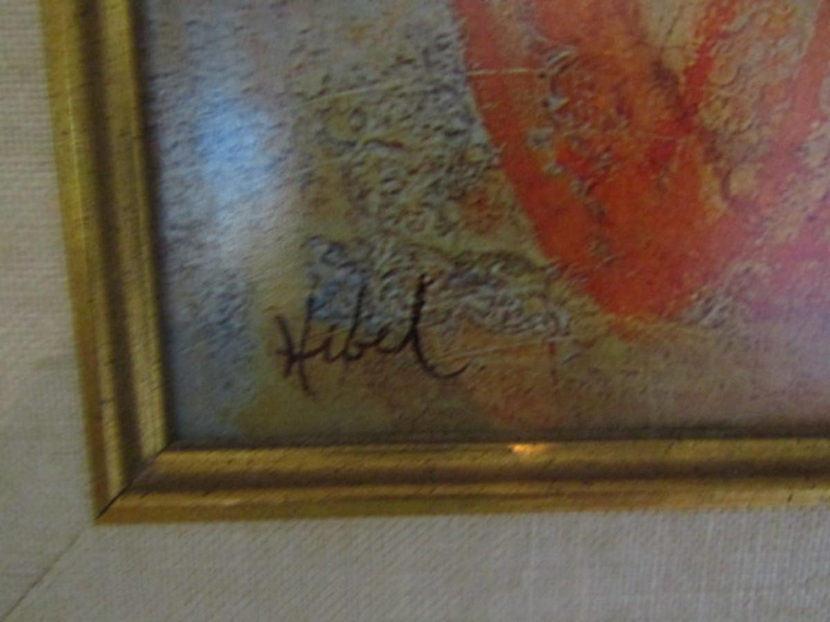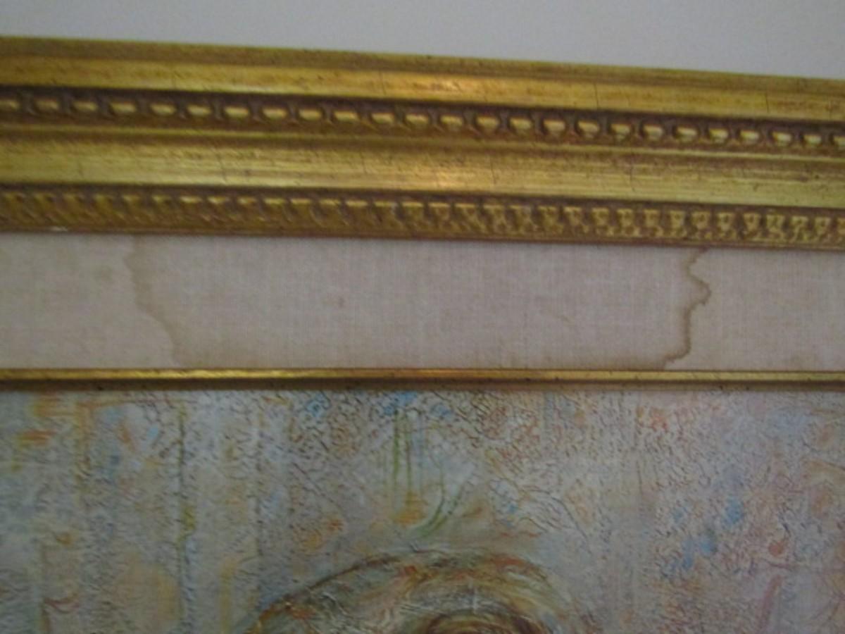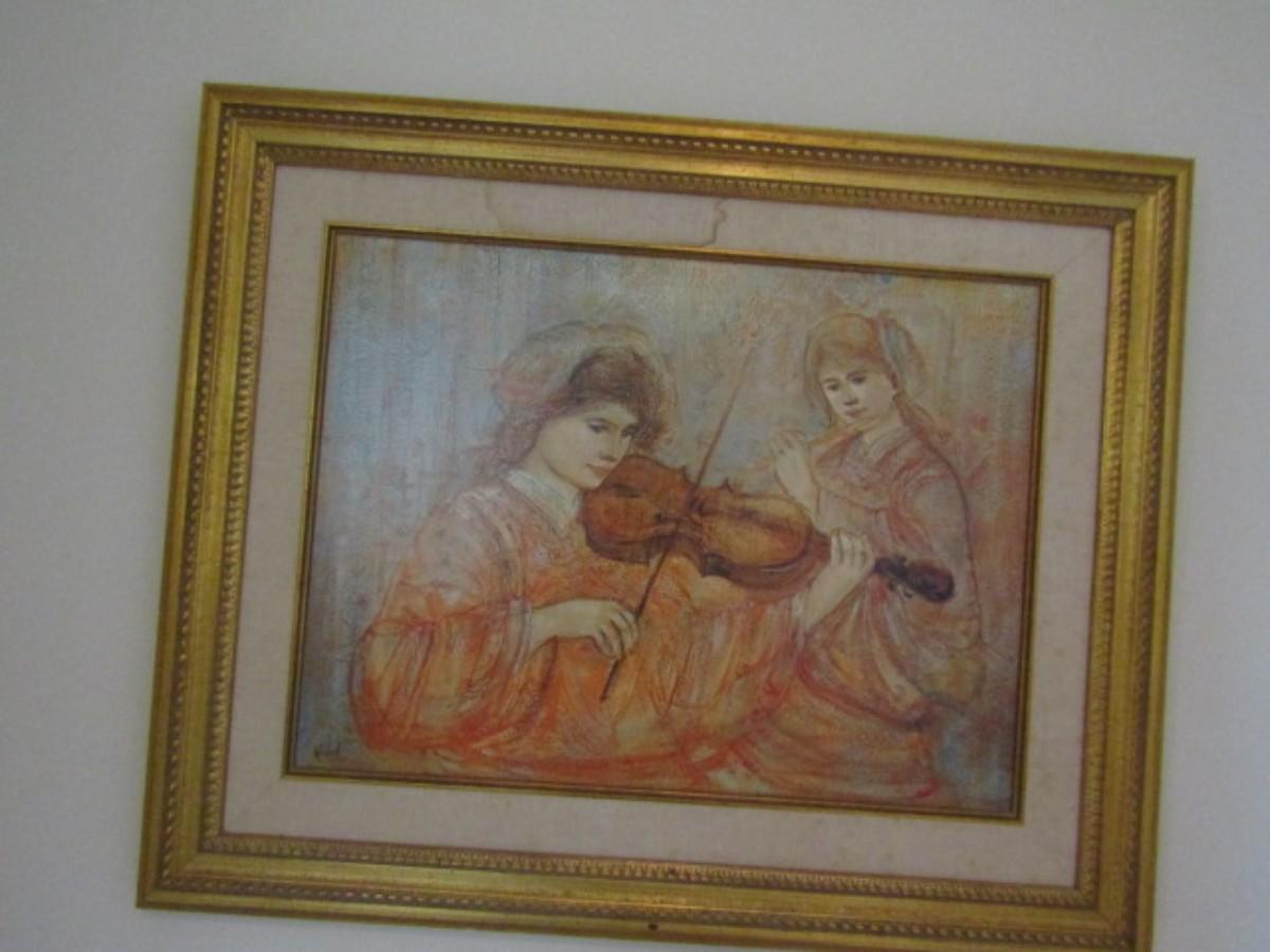 Framed Art Print on Canvas 'Duet' by Edna Hibel has water stain on matting as shown