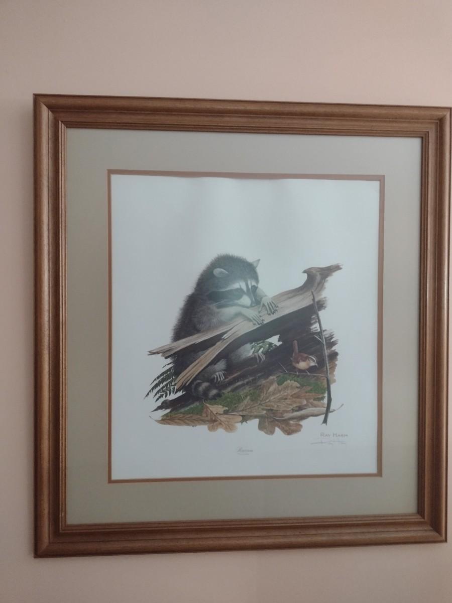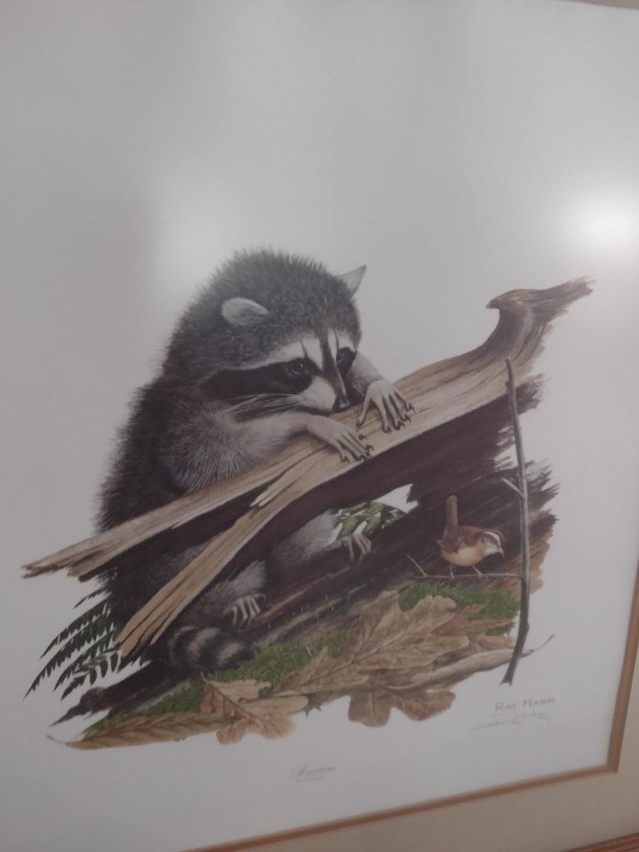 Framed Art Print Raccoon at Log by Ray Harm