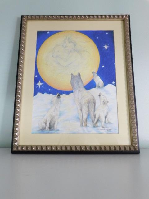 Framed Art Print Wolves Howling at Desert Moon Wolf Spirit 14"x17" R. Elaine Holm
