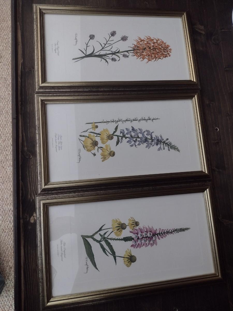 Framed Art Set of Three Flora Prints by Ray Harm Choice A