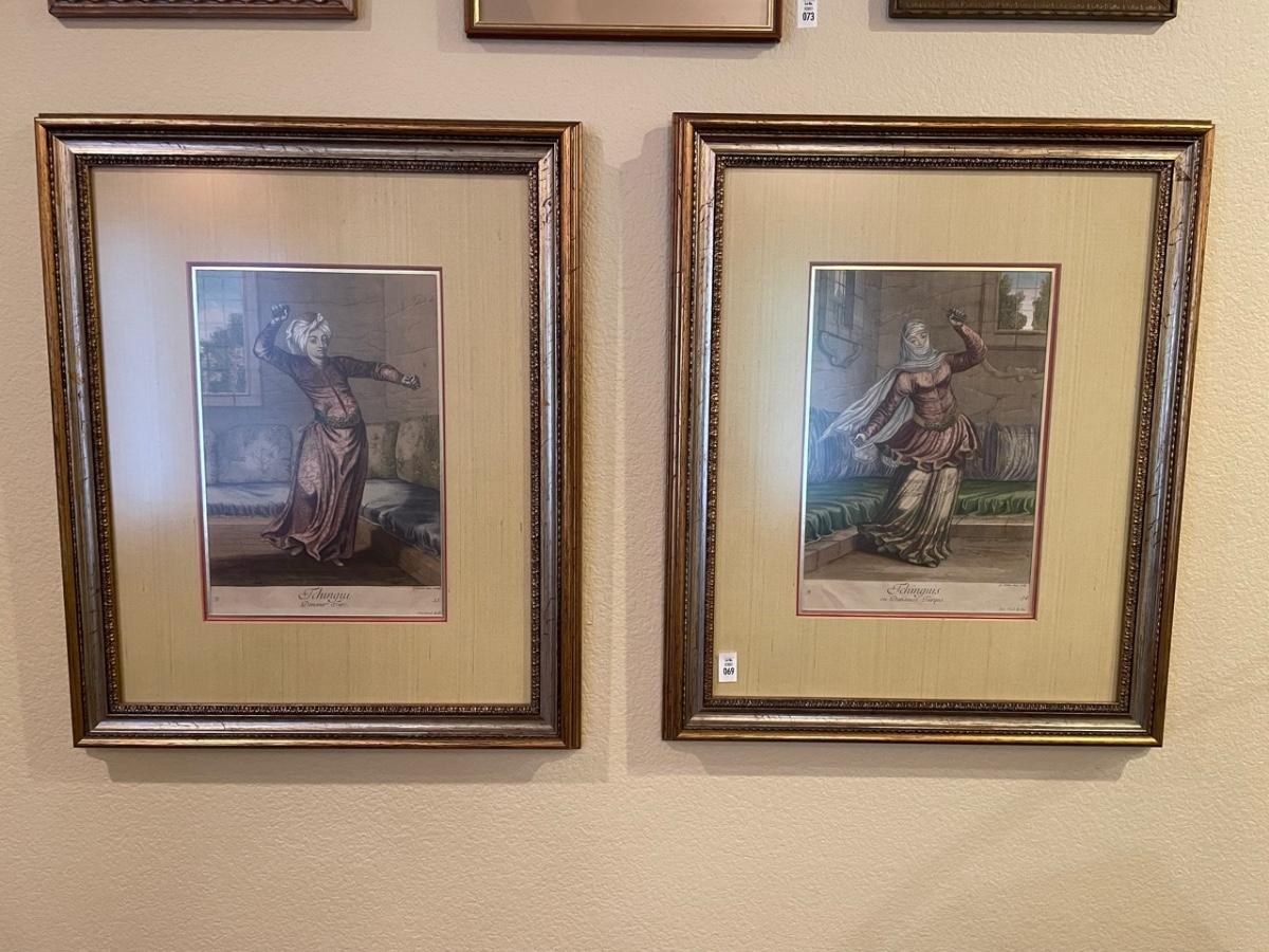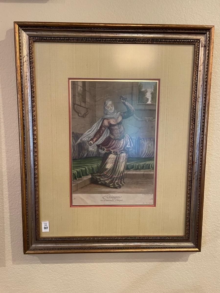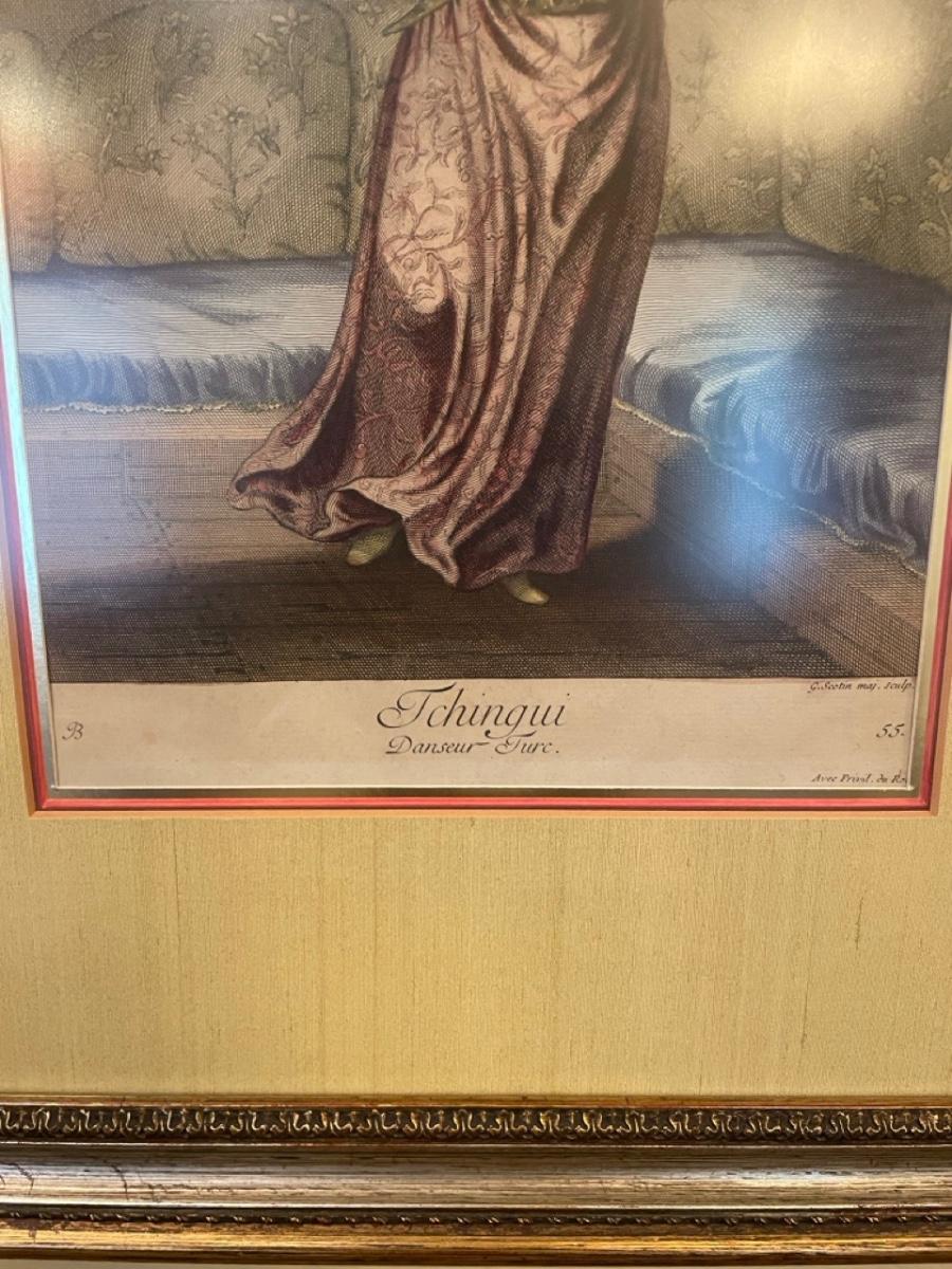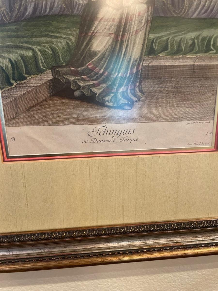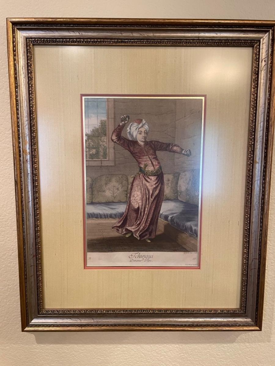 Prints. Illustrations of Ottomans by Jean-Baptiste Vanmour, 1707. Turkish dancer plate 54 etching/print & Turkish dancer.