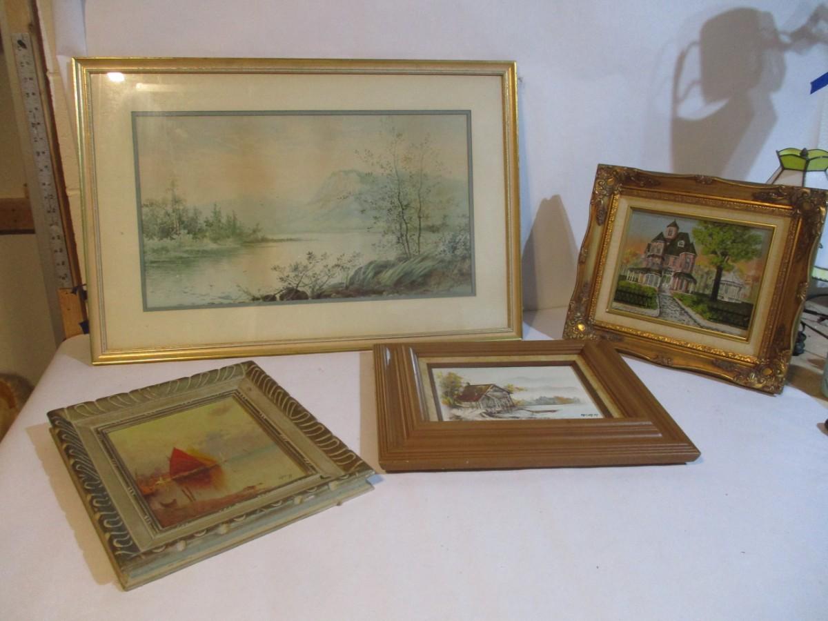 Framed Art Various Artists Oil Painting By H Hargrove Watercolor By H. Levey