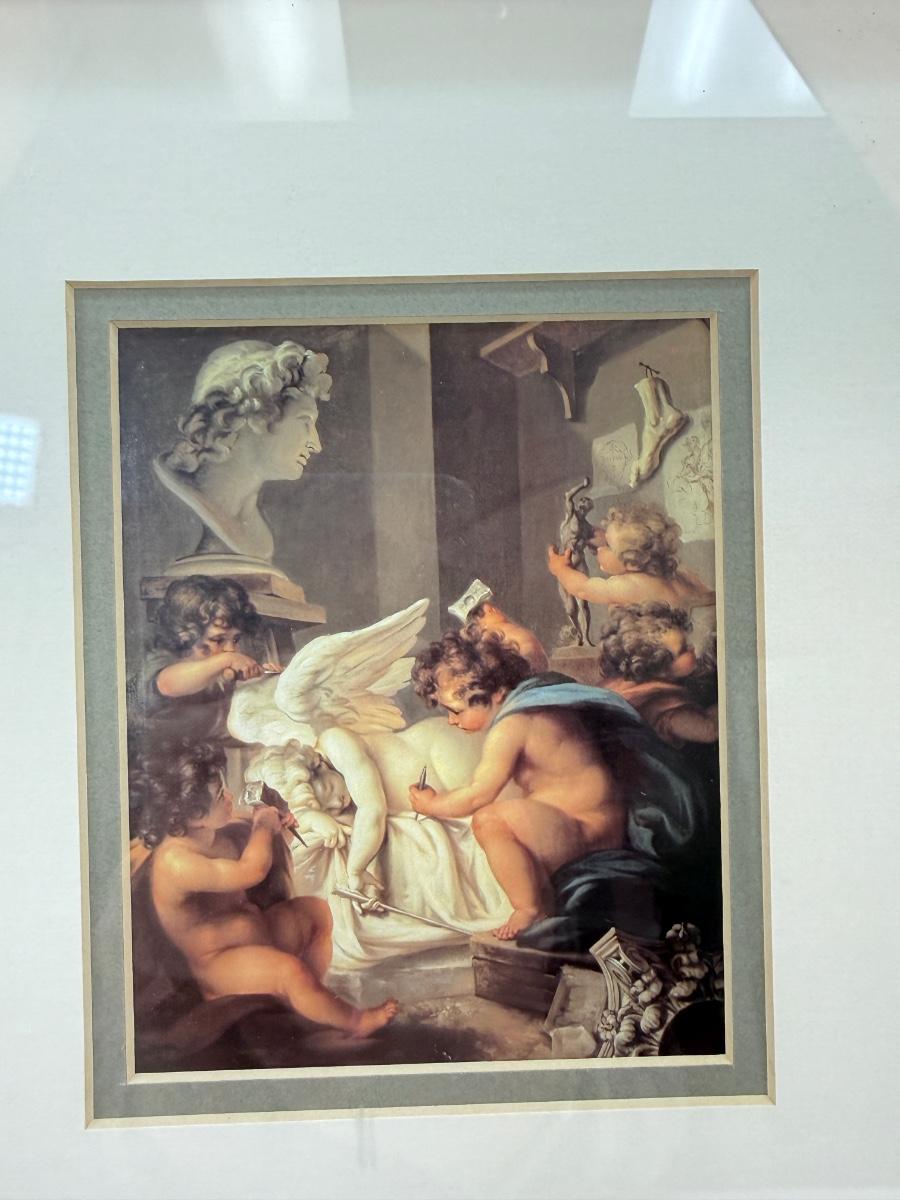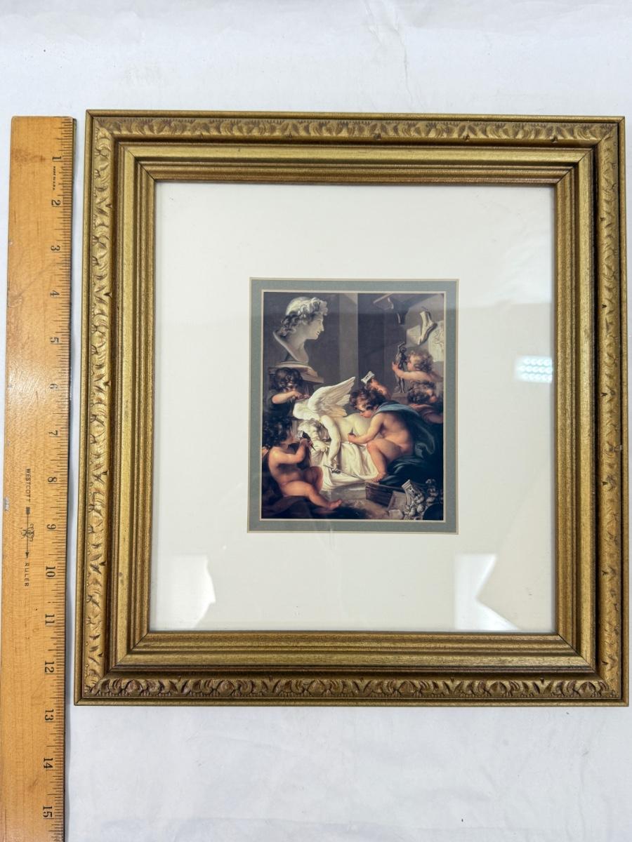 Framed Art: Vintage Cherubs Angels Art "Cherubs Sculpting an Angel
