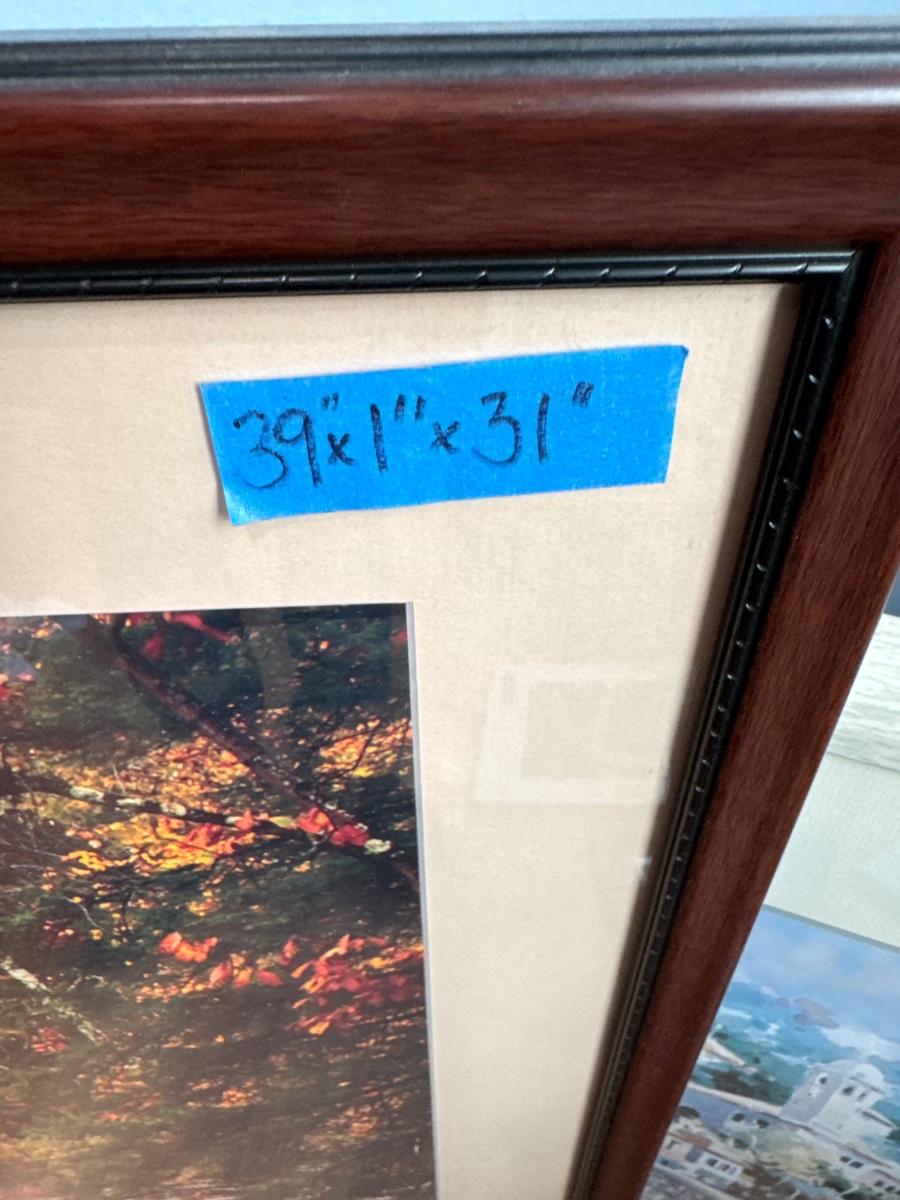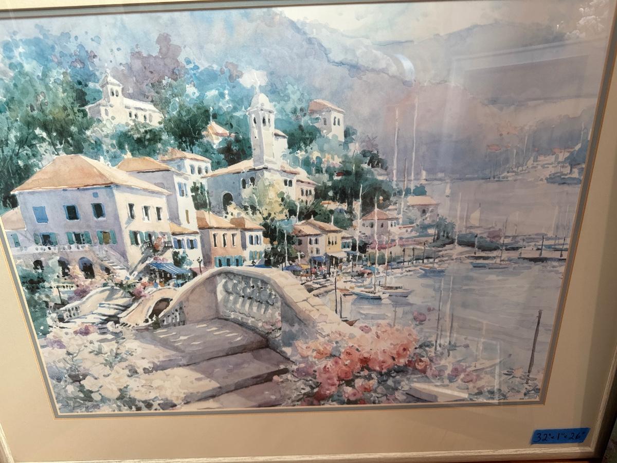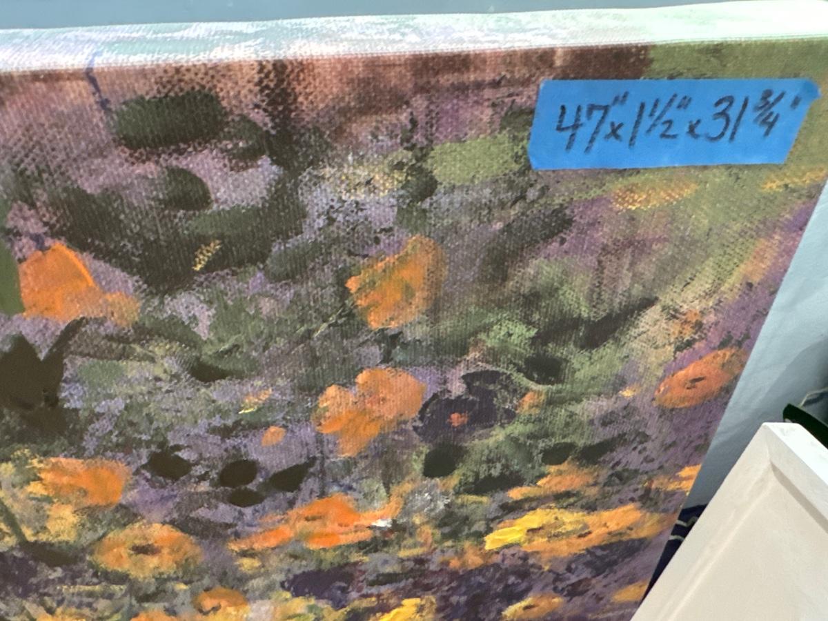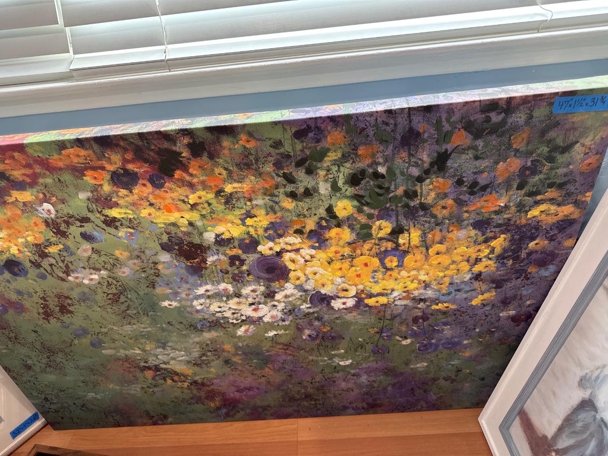 Eight artworks, one mounted canvas print, all in good condition, no shipping