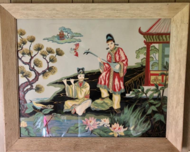 Beautiful Asian Inspired watercolor. Framed artwork by artist Arthur Beaumont. About 20"x 27" inside of frame.