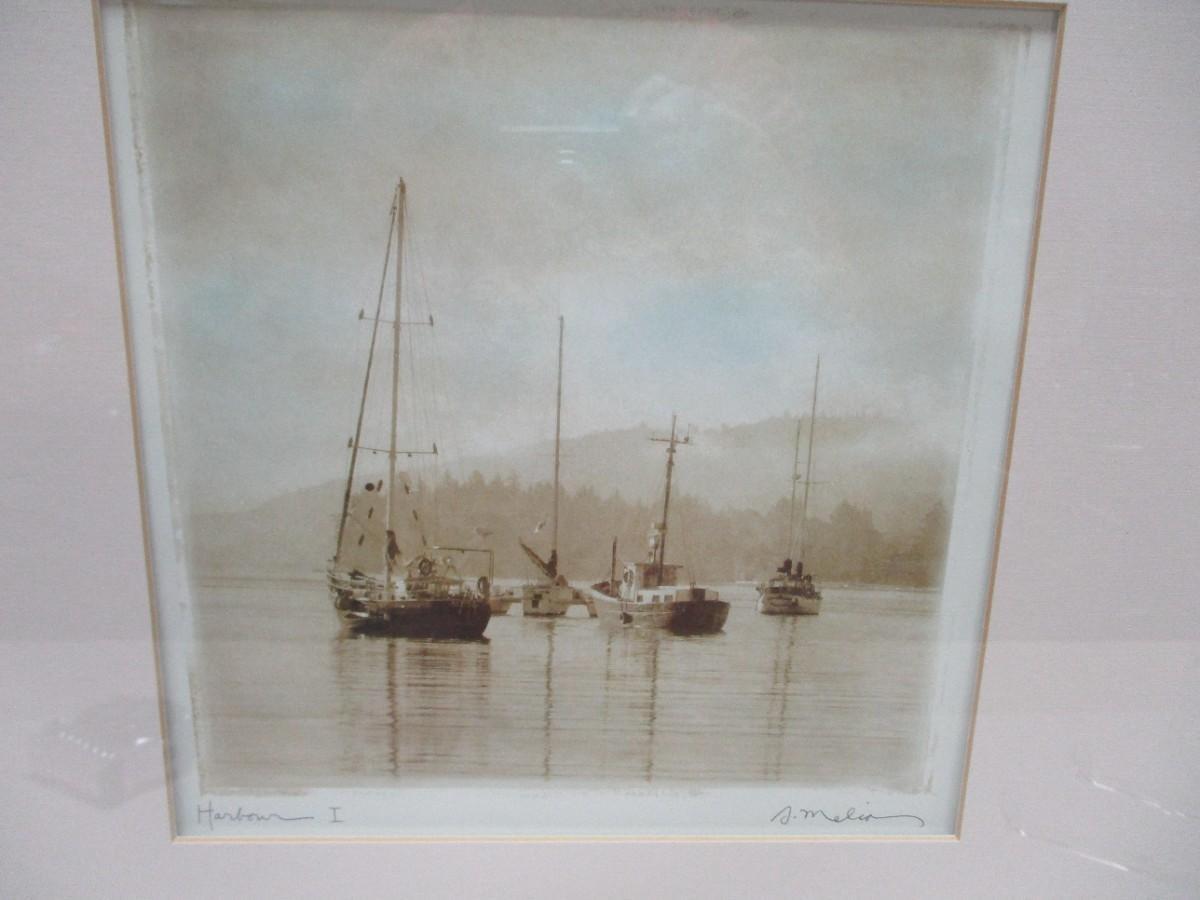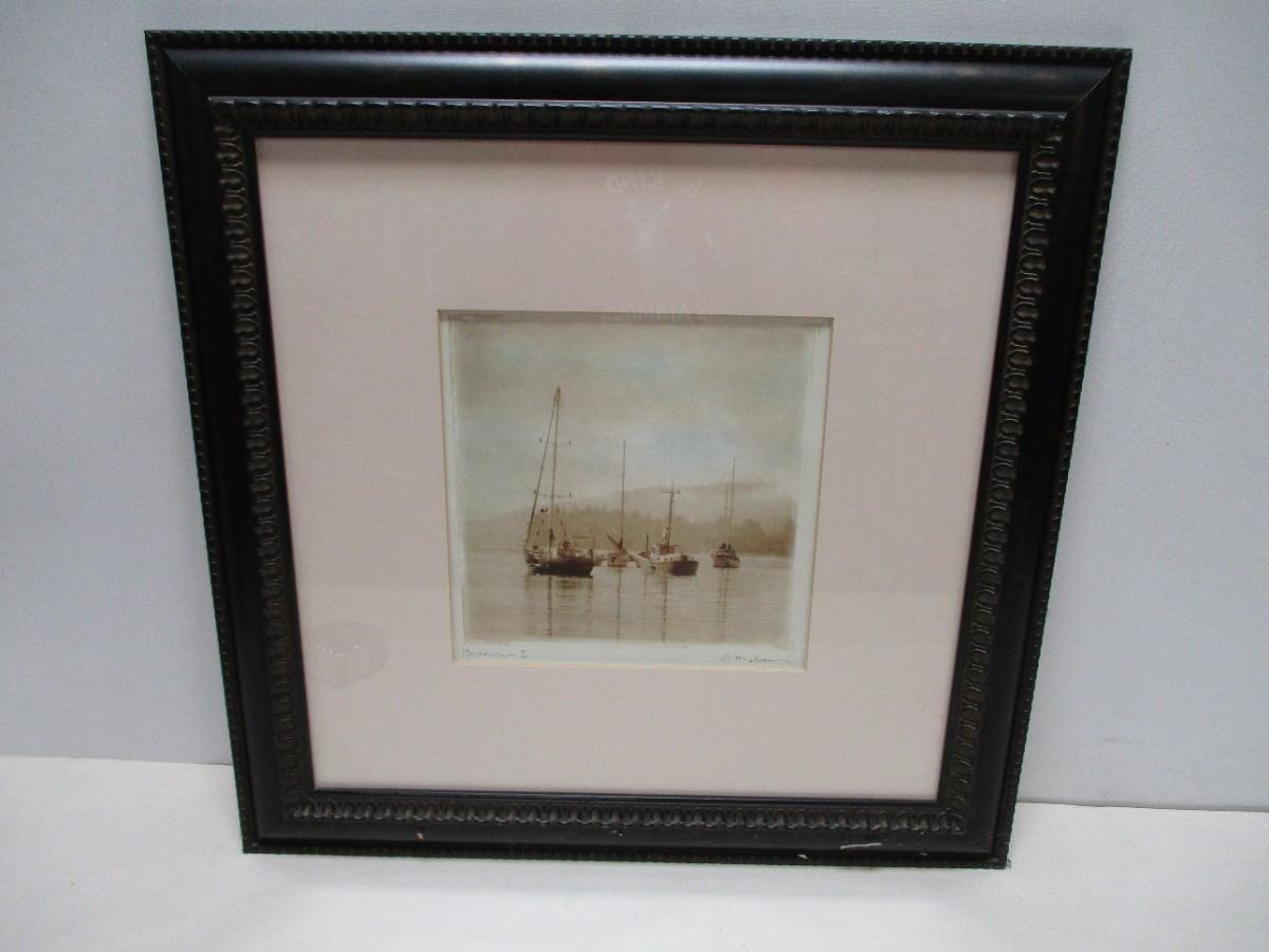 Framed Artist Signed "Harbor I" Picture 22" x 22"