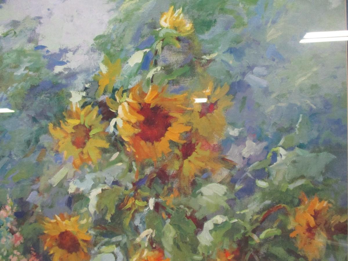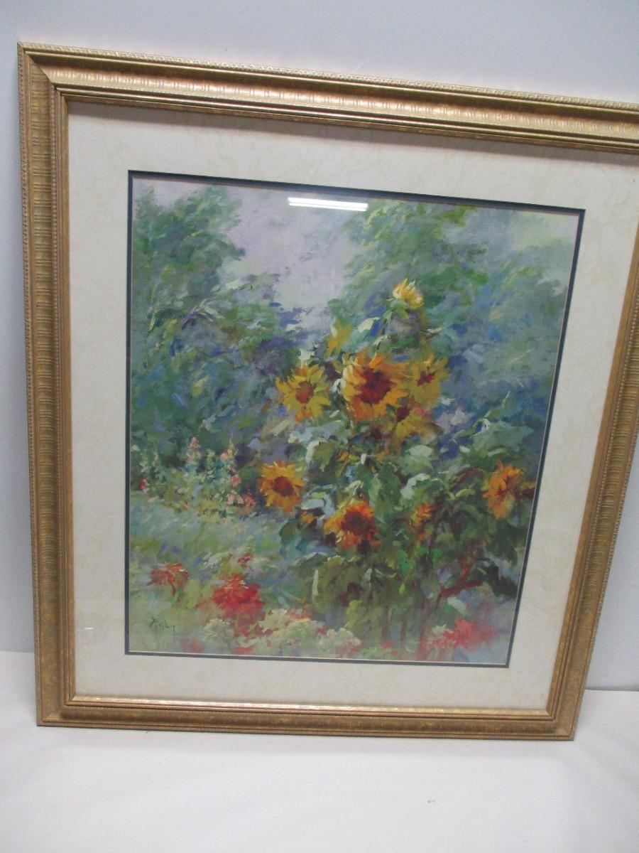 Framed Artist Signed "Sunflowers In The Breeze" Picture 31" x 35"