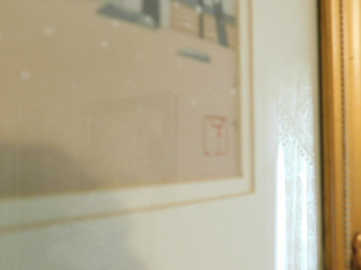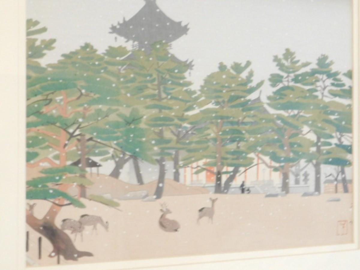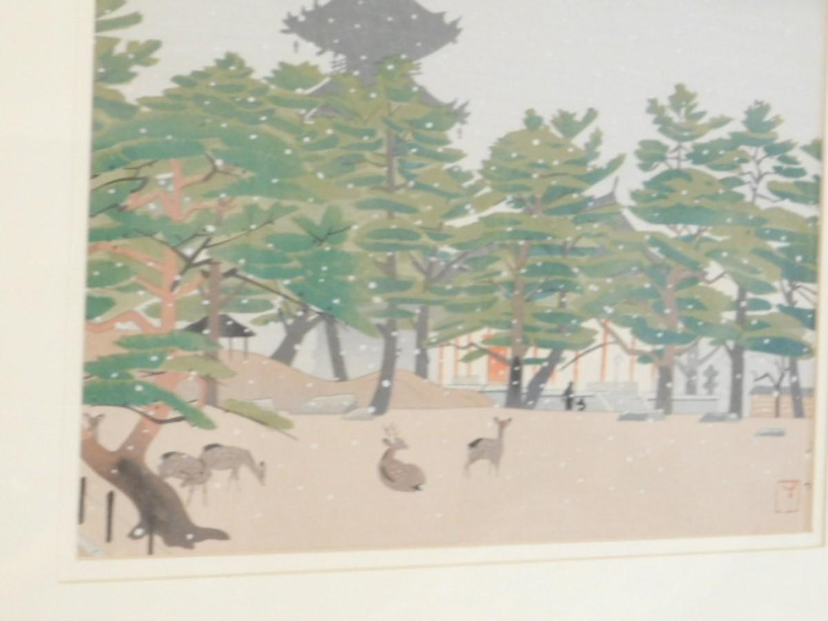 Framed Artwork Asian Temple Deer Forest Signed by Artist