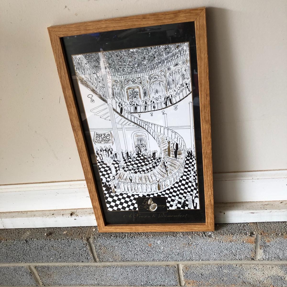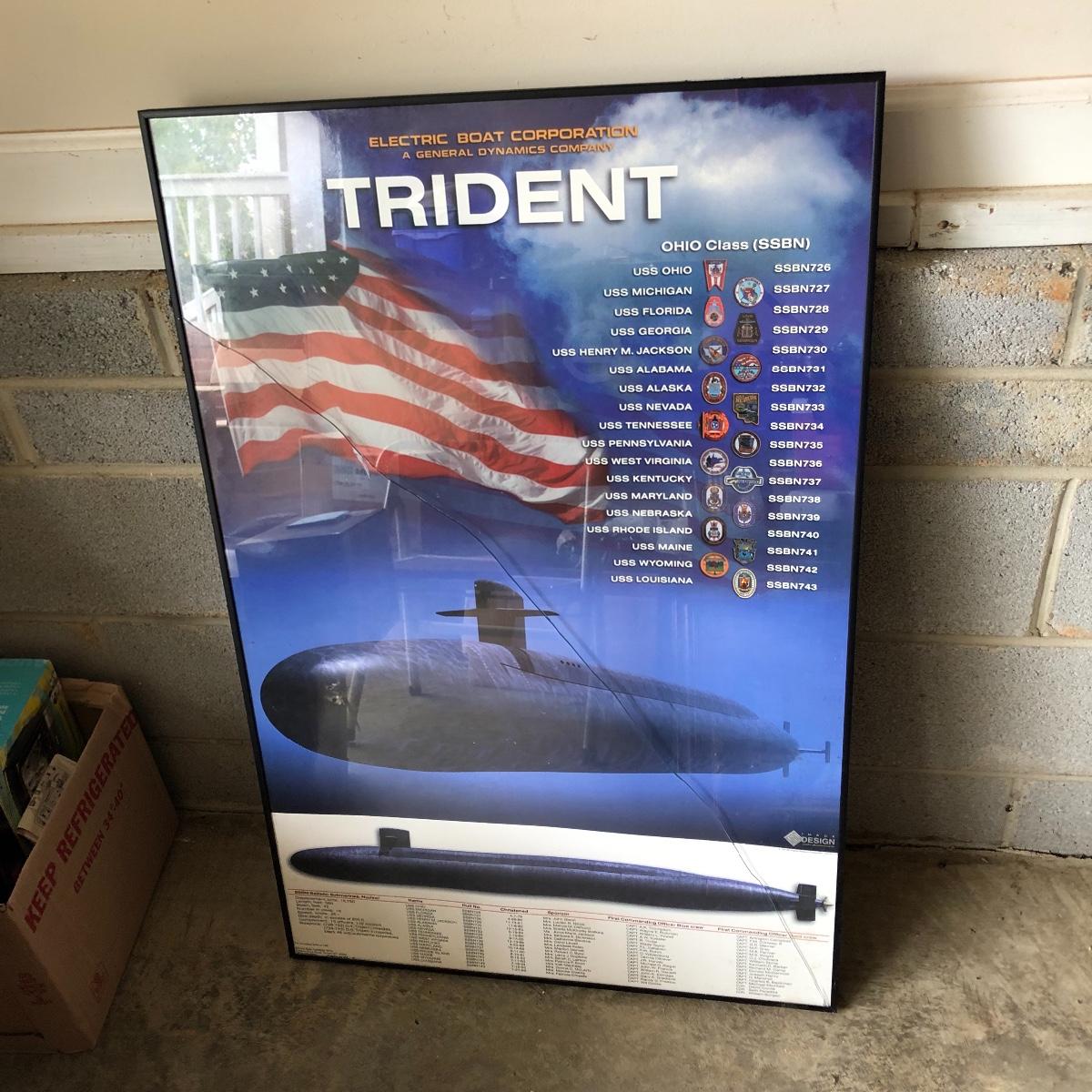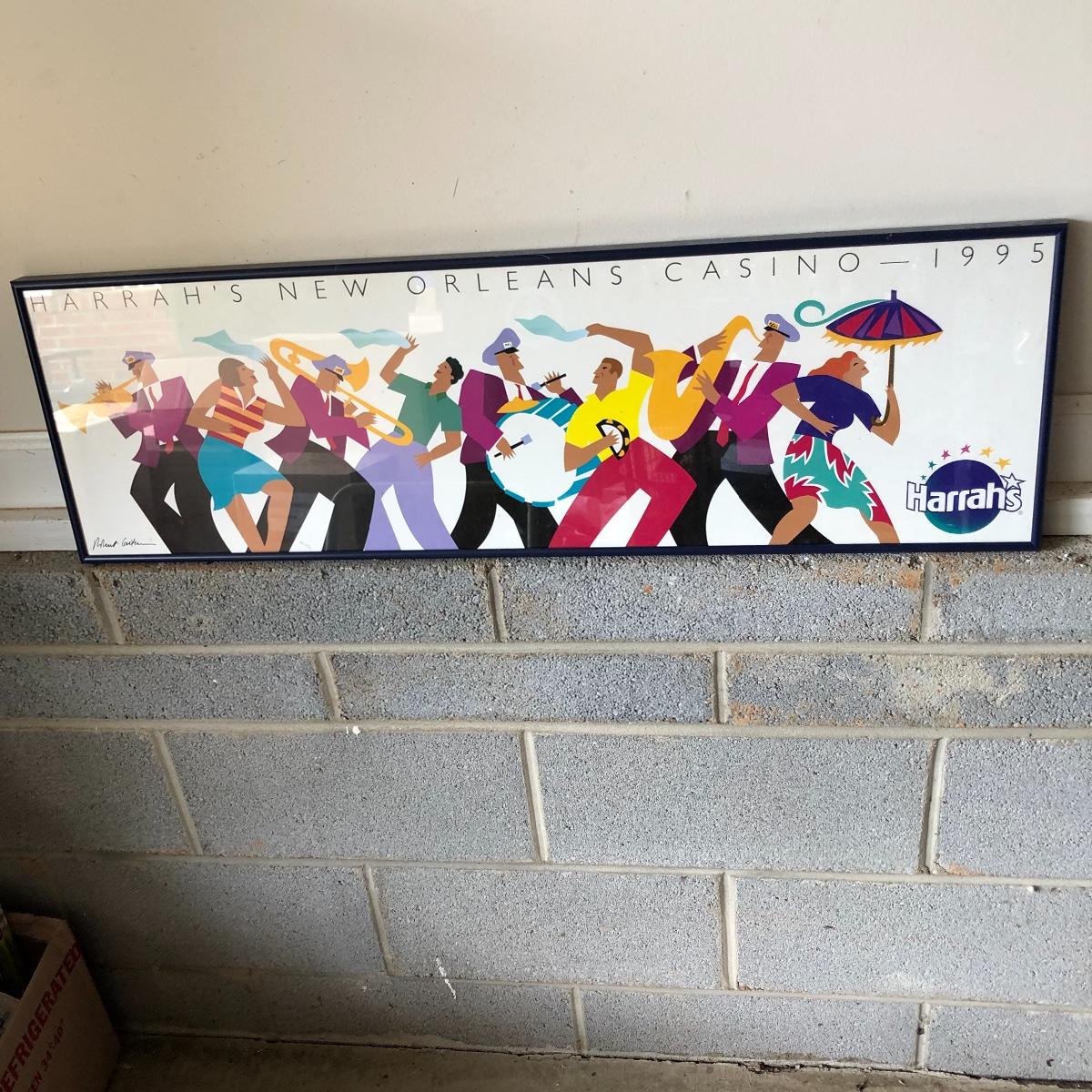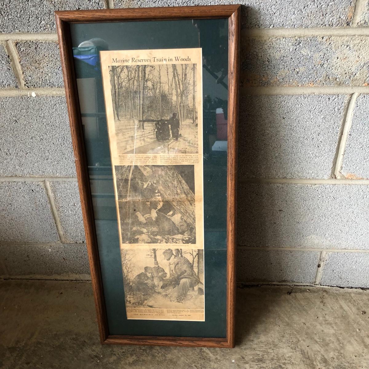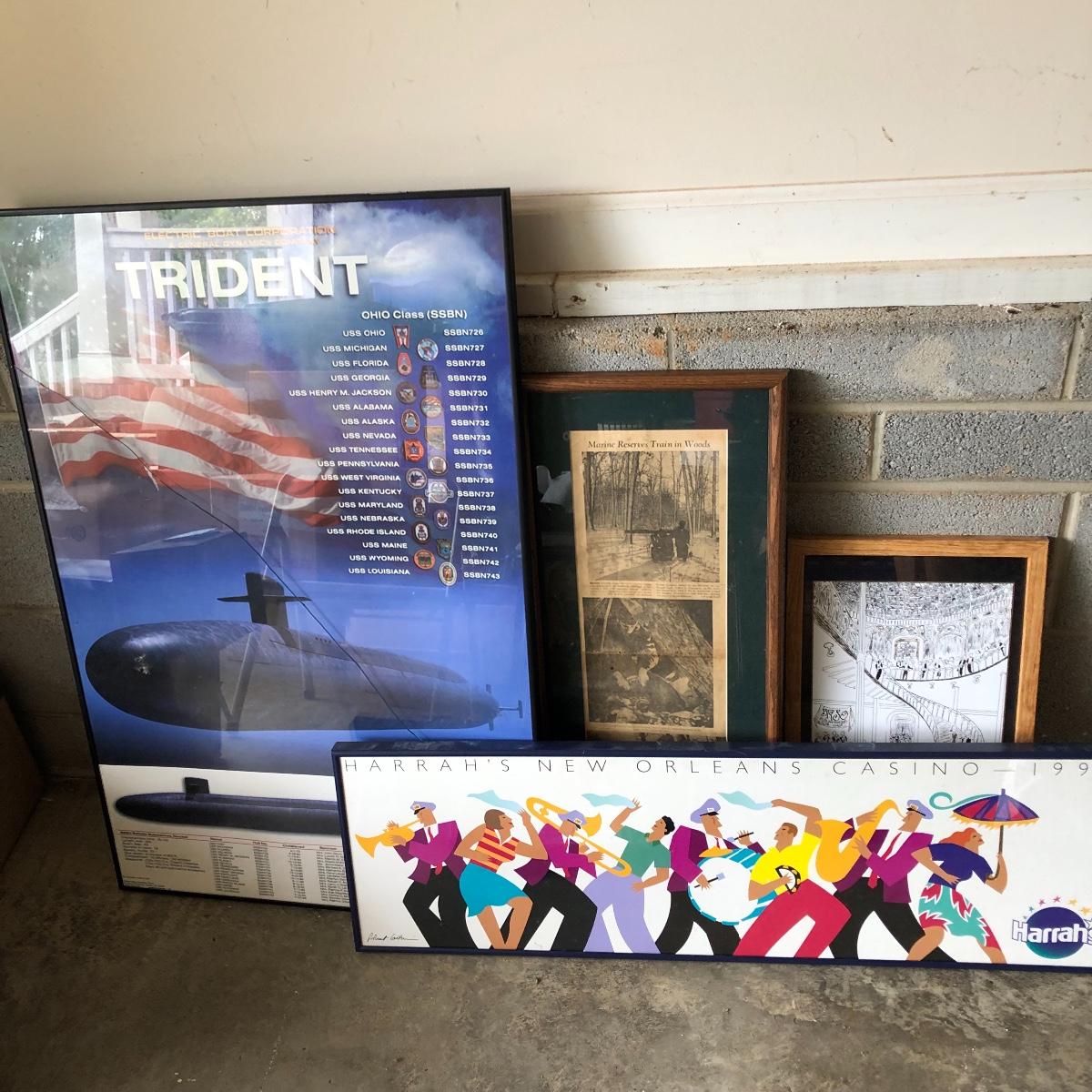Lot includes Trident Submarine and Marines training in woods framed artwork, Harrahs Casino New Orleans and Bain Rouge 50th anniversary symphony framed artwork. Largest frame measures 24” x 36” and has cracked glass.